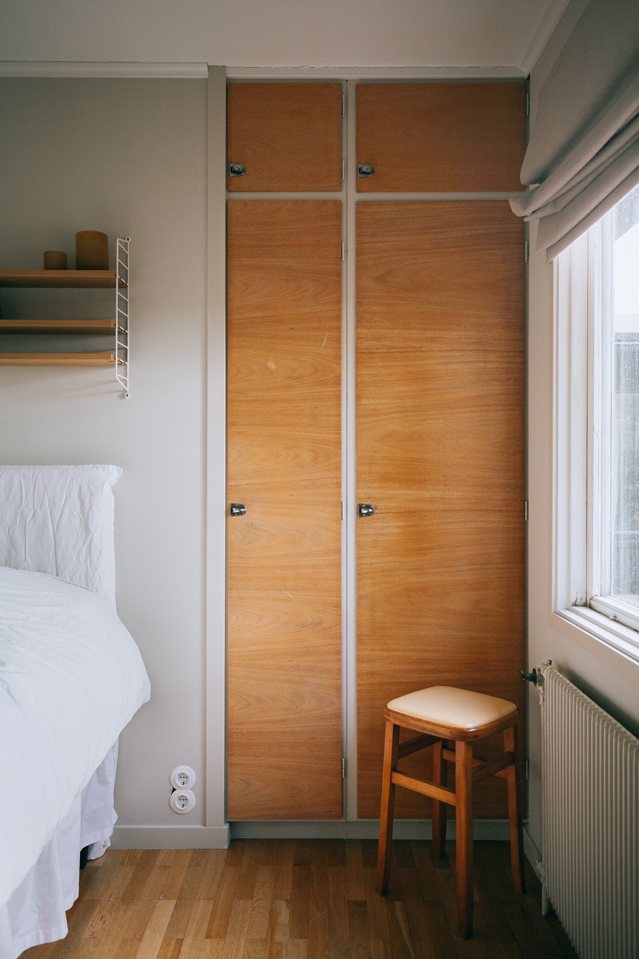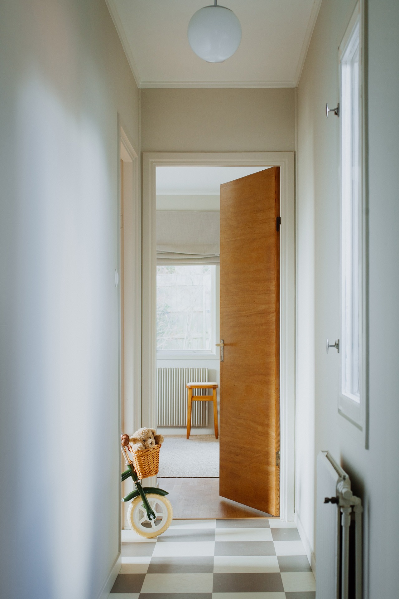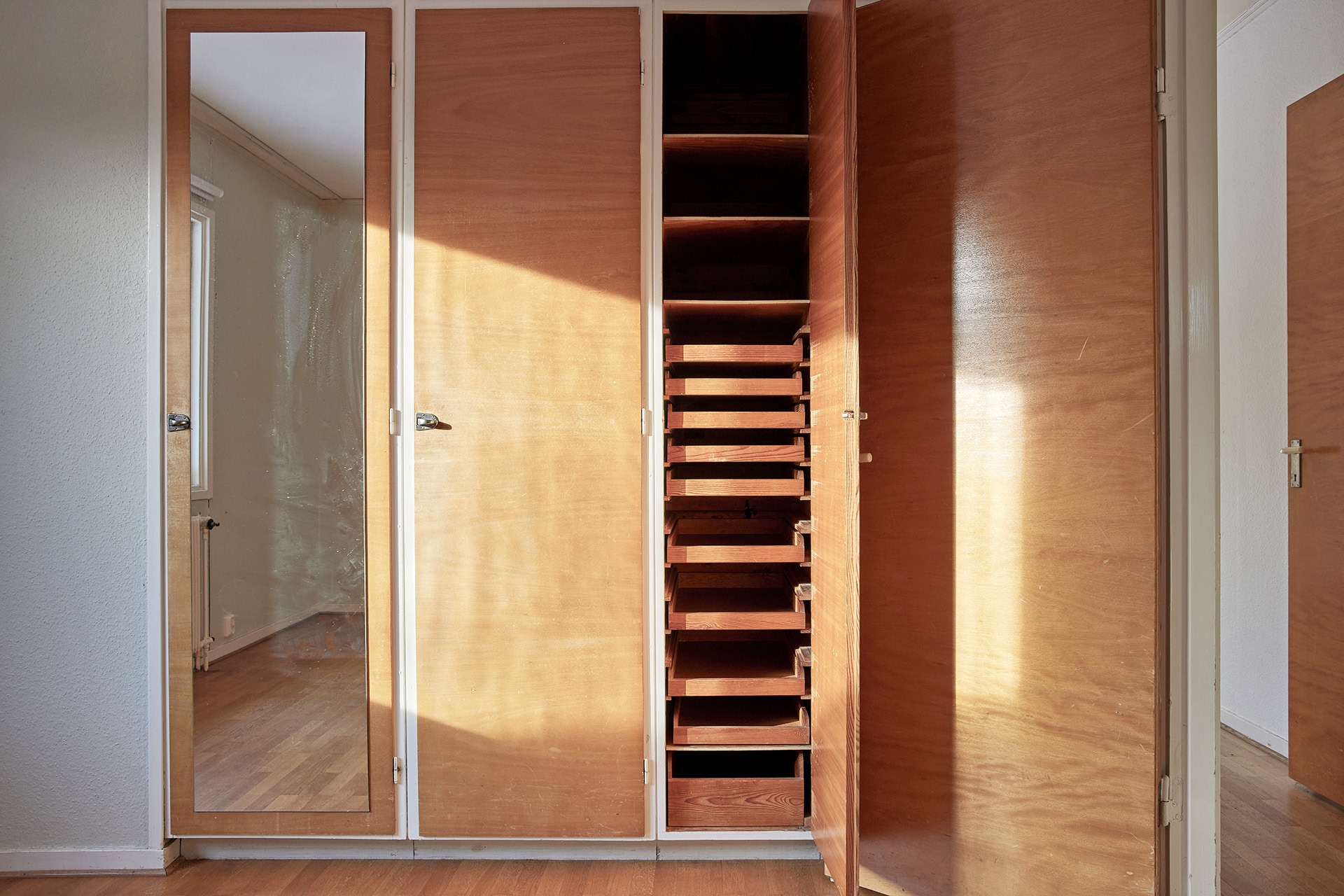 Vänder man sig 180 grader, och har badrummet i ryggen, blickar man genom en korridor som avslutas med husets största sovrum. På vägen dit passerar man ett mindre sovrum som idag fungerar som barnrum. I båda rummen har Amanda bevarat garderobsdörrar och garderobsinredning i original.