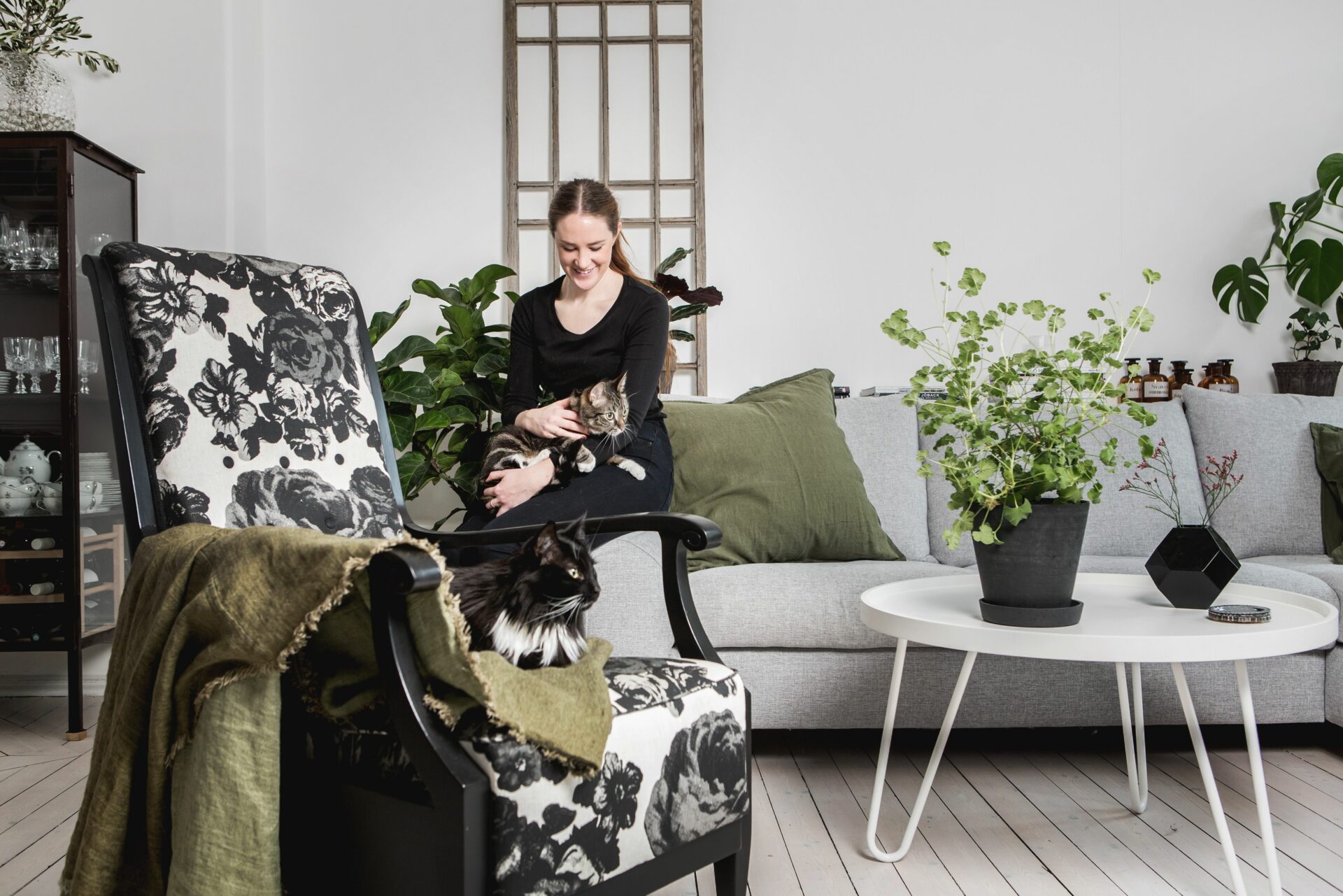 Linda bor, sedan fem år tillbaka, tillsammans med sambon Anton och katterna Tuss och Brum i en sekelskifteslägenhet på Olivedalsgatan. Som gäst hänförs man framförallt av planlösningen, ljuset och det fria läget högst upp men även av känslan av att vara i ett hem ute på landet – mitt i Linné!