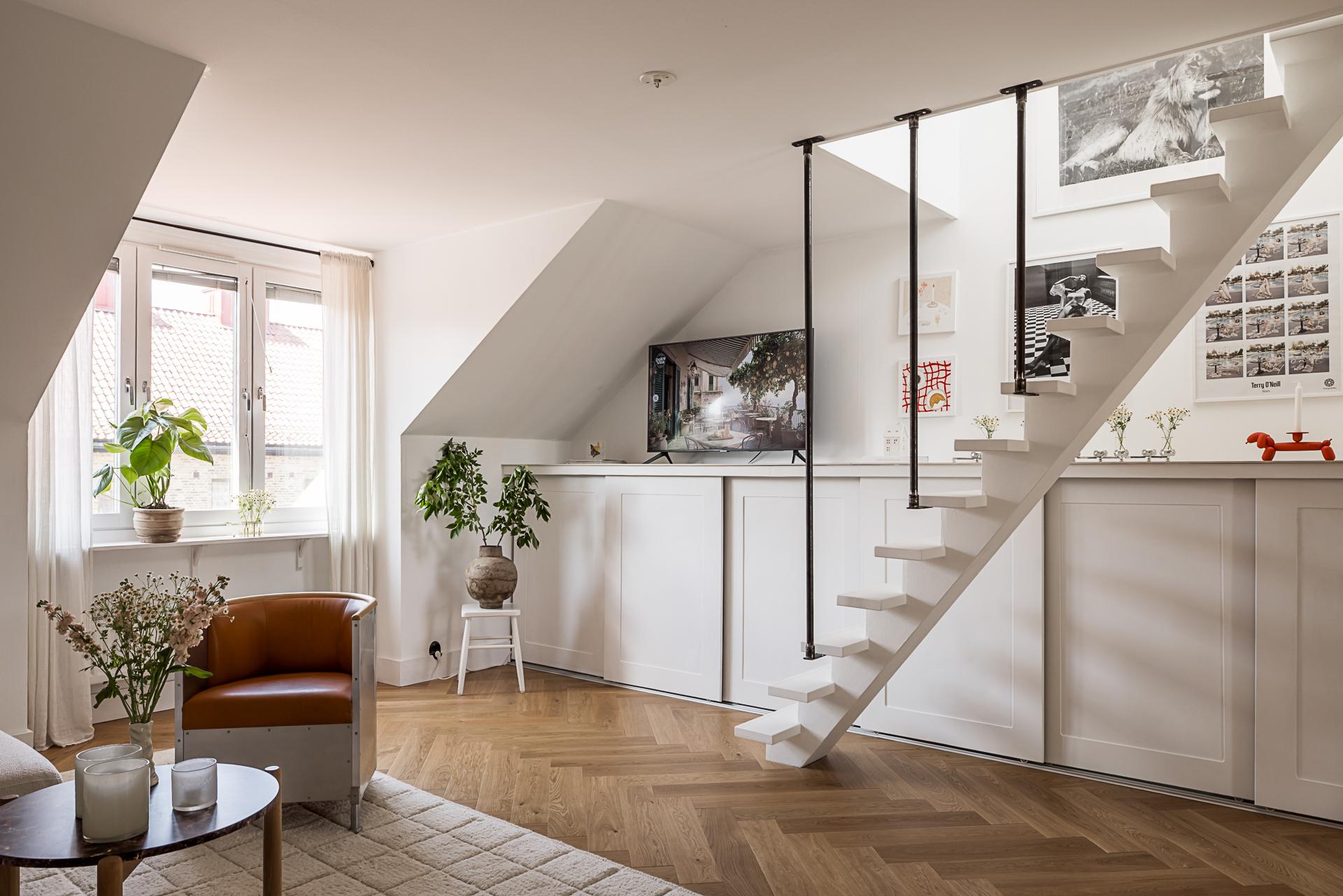 Helrenoverad vindslägenhet i etage med solig takterrass på en av Linnés bästa adresser och Slottsskogen inpå knuten. Boarean är uppmätt till 50 kvm medan sovloftet är på ca 13 kvm biarea. Öppna sociala ytor som gjorda för umgänge och ett övre plan med ett tyst beläget sovrum. Genomgående planlösning med fönster åt två väderstreck och utsikt över takåsarna. Renoverat badrum med tvättmaskin och genomgående stavparkett i fiskbensläggning. Synliga murstockar och en herren på täppan känsla. Högst upp i huset och ensam på våningsplanet. Två rymliga förråd medfölje. Låg avgift i mycket bra förening med egna p-platser utanför porten. Går eventuellt att göra om till en minitrea.