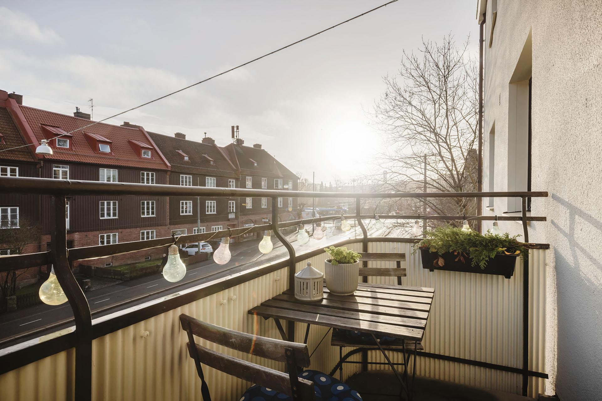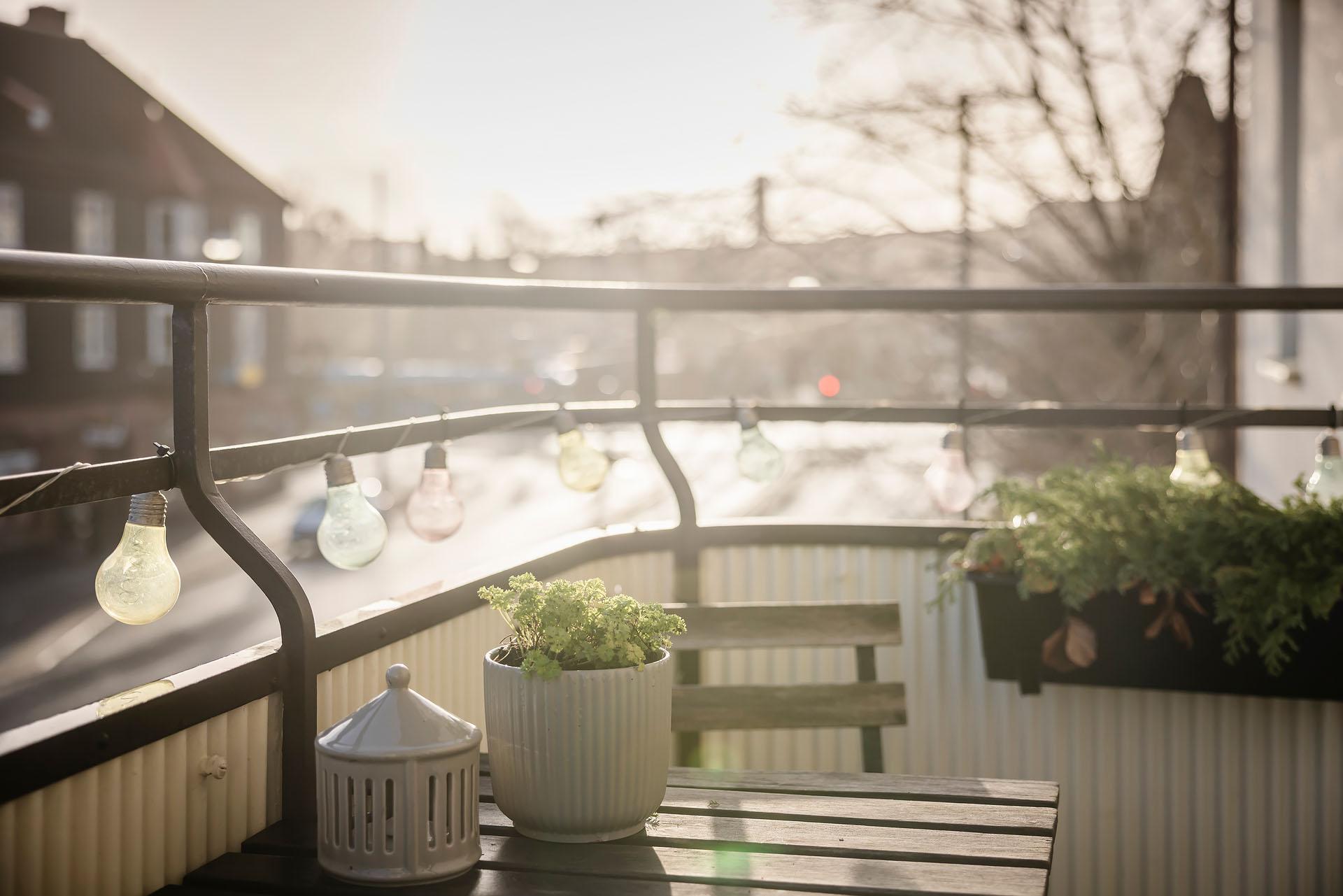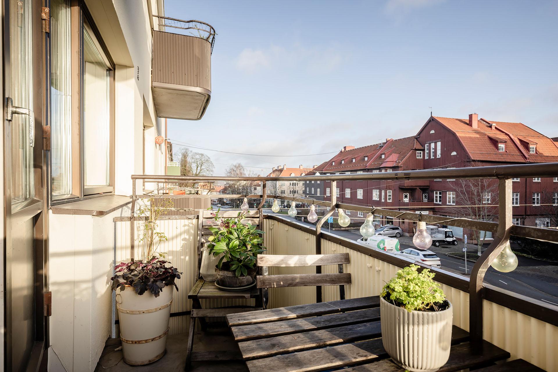- Balkong/Uteplats: Ja. Balkong i östläge med sol fram till 13-14.