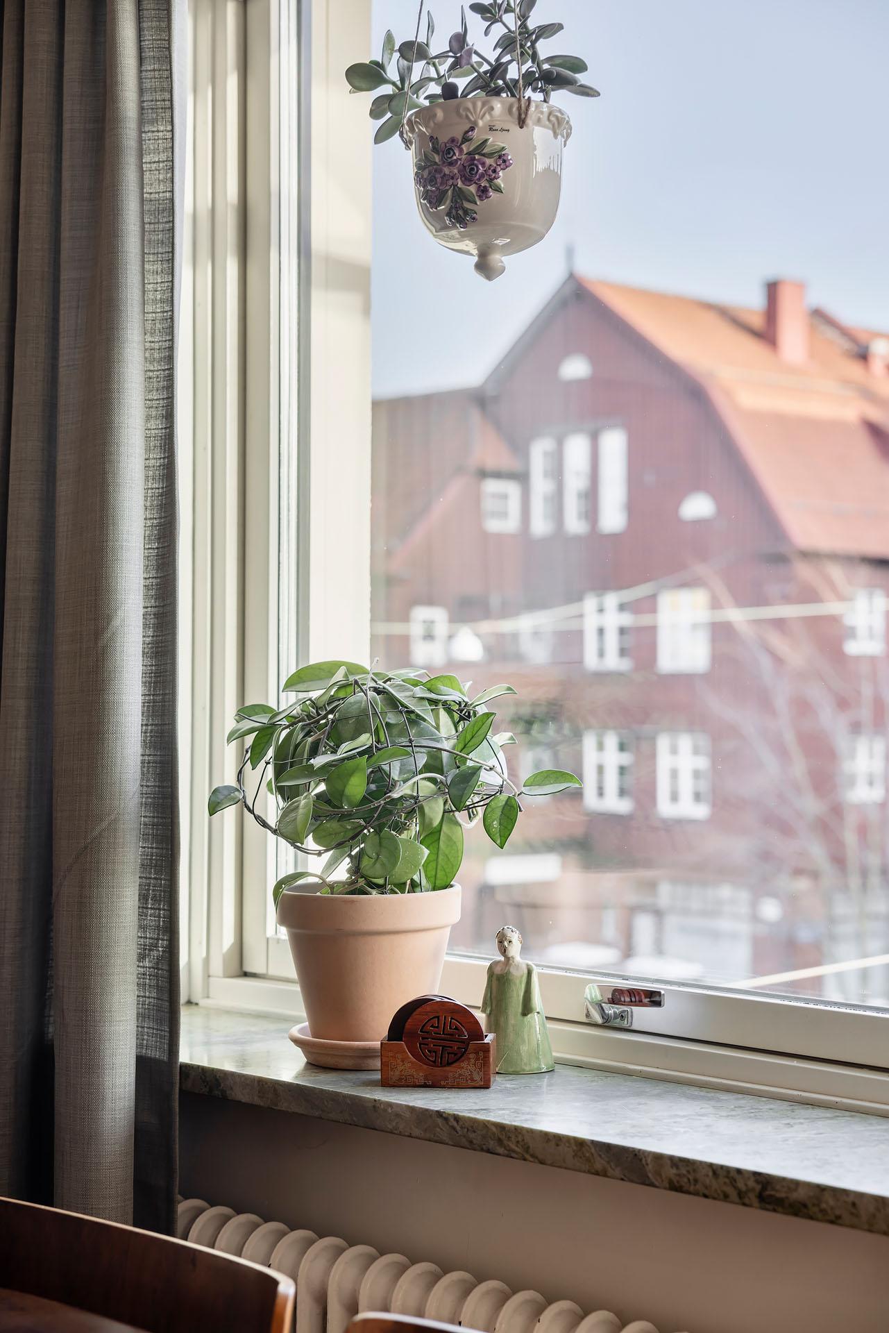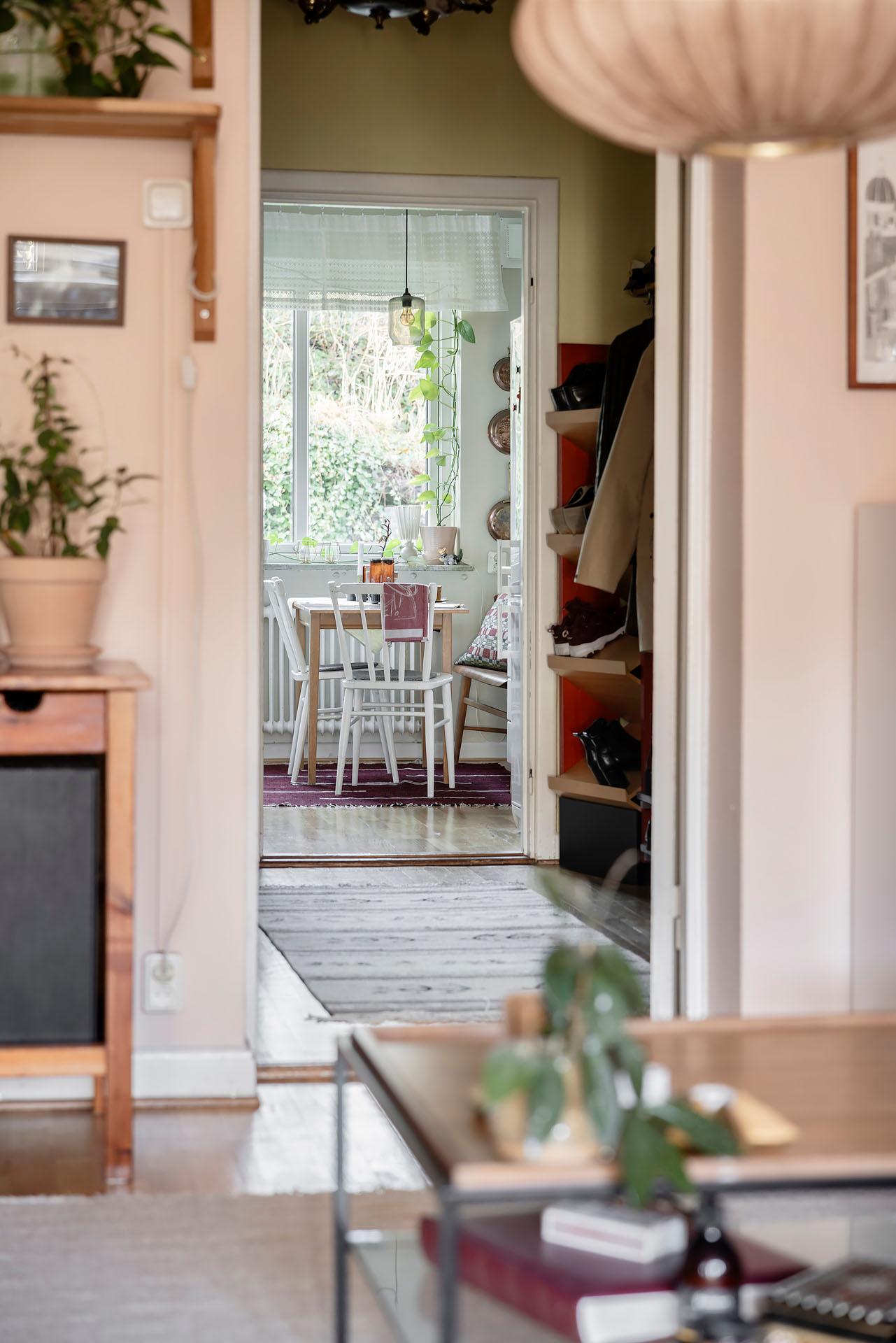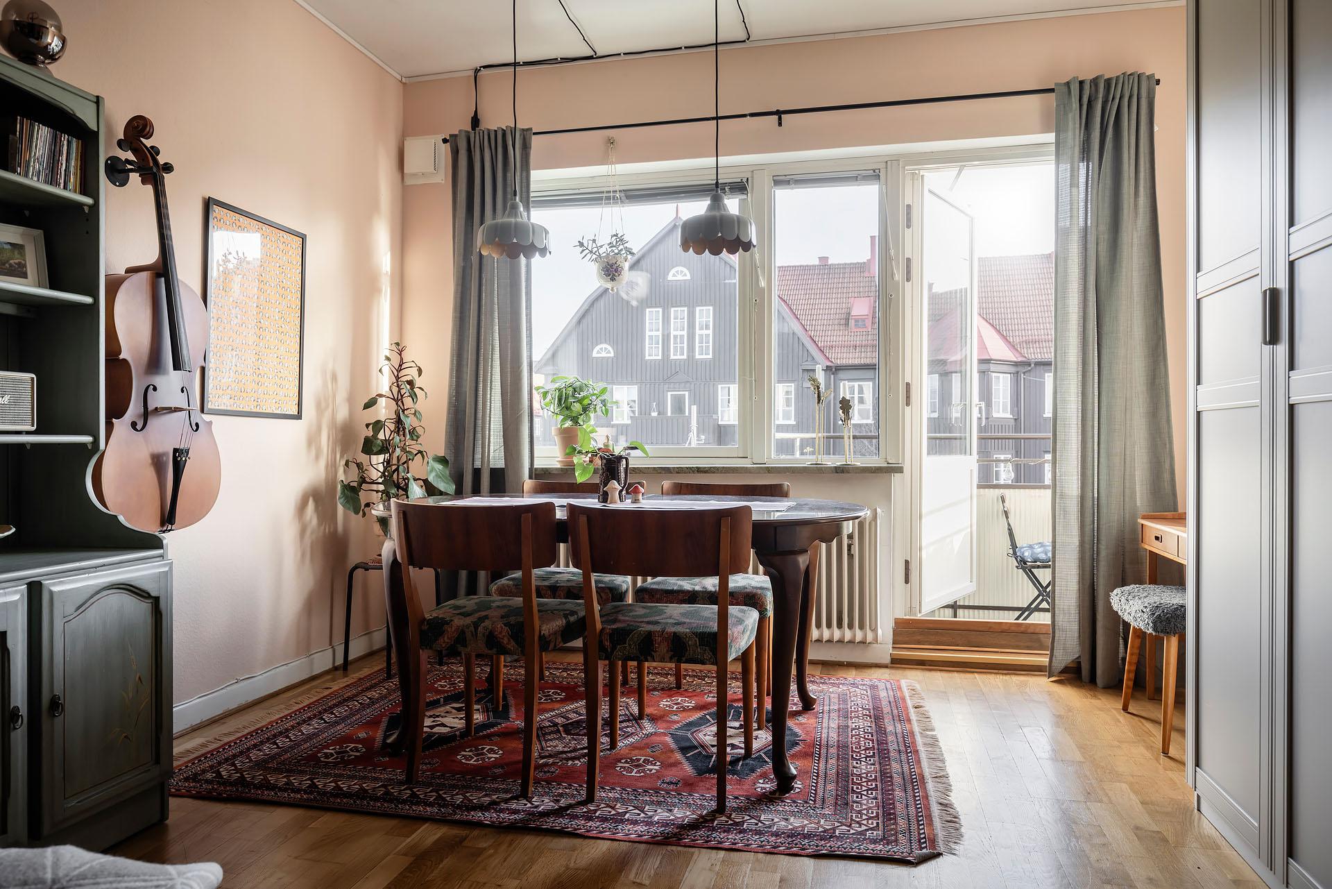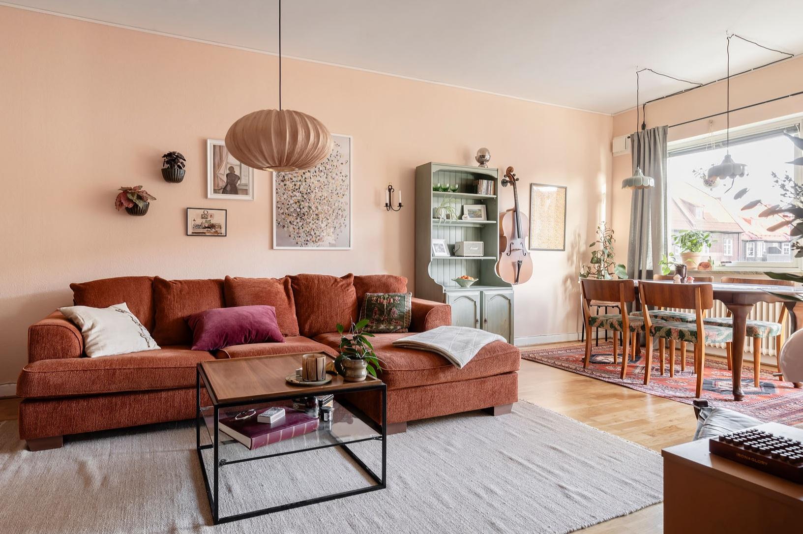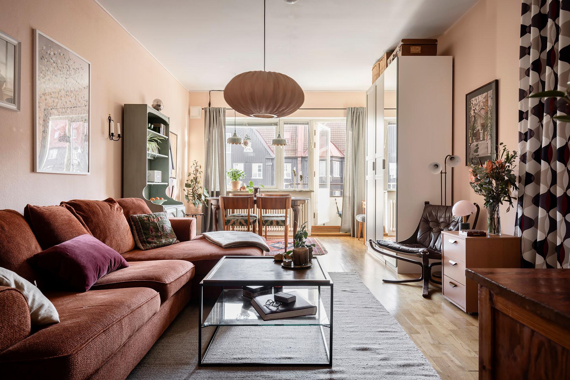 Det är ett hem med stor charm, och färgpaletten av ljusgult, beigerosa och rosa ger hallen, vardagsrummet och sovalkoven karaktär. De bevarade originaldetaljerna berättar husets historia. Lägenheten bjuder in till umgänge, och vardagsrummet har som nämnts plats för stora middagsbjudningar. Det finns även utrymme att sitta och äta intill köksfönstret med rogivande utsikt mot Redbergsparkens natur. Ett trivsamt boende erbjuds med en rofylld uteplats på baksidan med utemöbler och grill. Det är en liten förening med engagerad styrelse och familjär stämning grannar emellan. Extra mysigt är att föreningen inhyser två lokaler, båda kaféer.