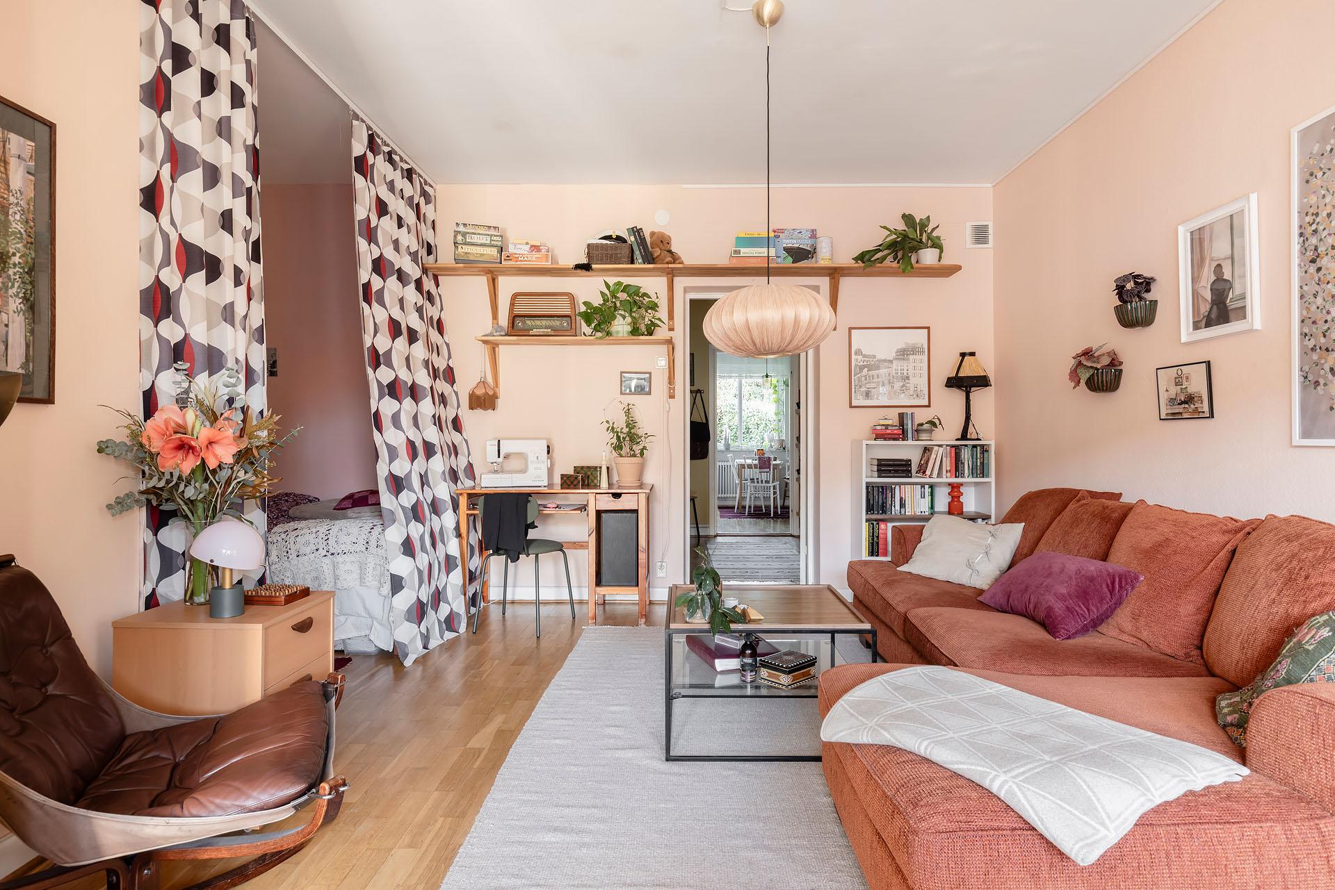 I ett klassiskt funkishus intill Redbergsparkens grönska finner vi denna inbjudande 1,5:a som är lätt att både möblera och trivas i. I vardagsrummet finns det utrymme för att samla kompisgänget för bubbliga middagar, och det är skönt att kunna dra för sovalkoven med draperier under besöket. Planlösningen passar bra för såväl en singel som ett par, och alkoven har plats för en dubbelsäng. Det går även att göra om lägenheten till en 2:a med separat sovrum. Takhöjden är luftig, och stora fönster i motsatta väderstreck låter dagsljuset flöda. Förmiddag njuter man av solen ute på balkongen med intagande vy över vackra landshövdingehuskvarter och Redbergsplatsens puls. Tillträde: tre månader eller senare. Varmt välkommen hem!