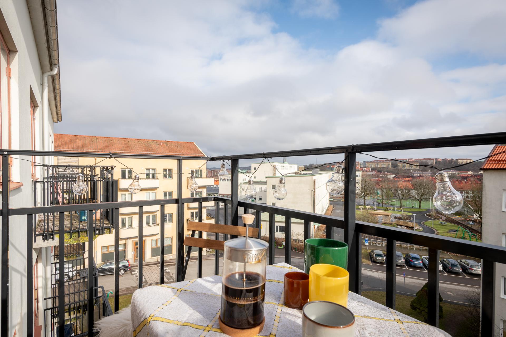 Högst upp i huset med stor balkong i utsiktsläge. En riktigt bra etta i mycket gott skick. Här är det bara att flytta in och trivas. Renoverat kök i ljuvligt grönt och badrum från föreningens stamrenovering. Stabil och bra förening med god ekonomi.