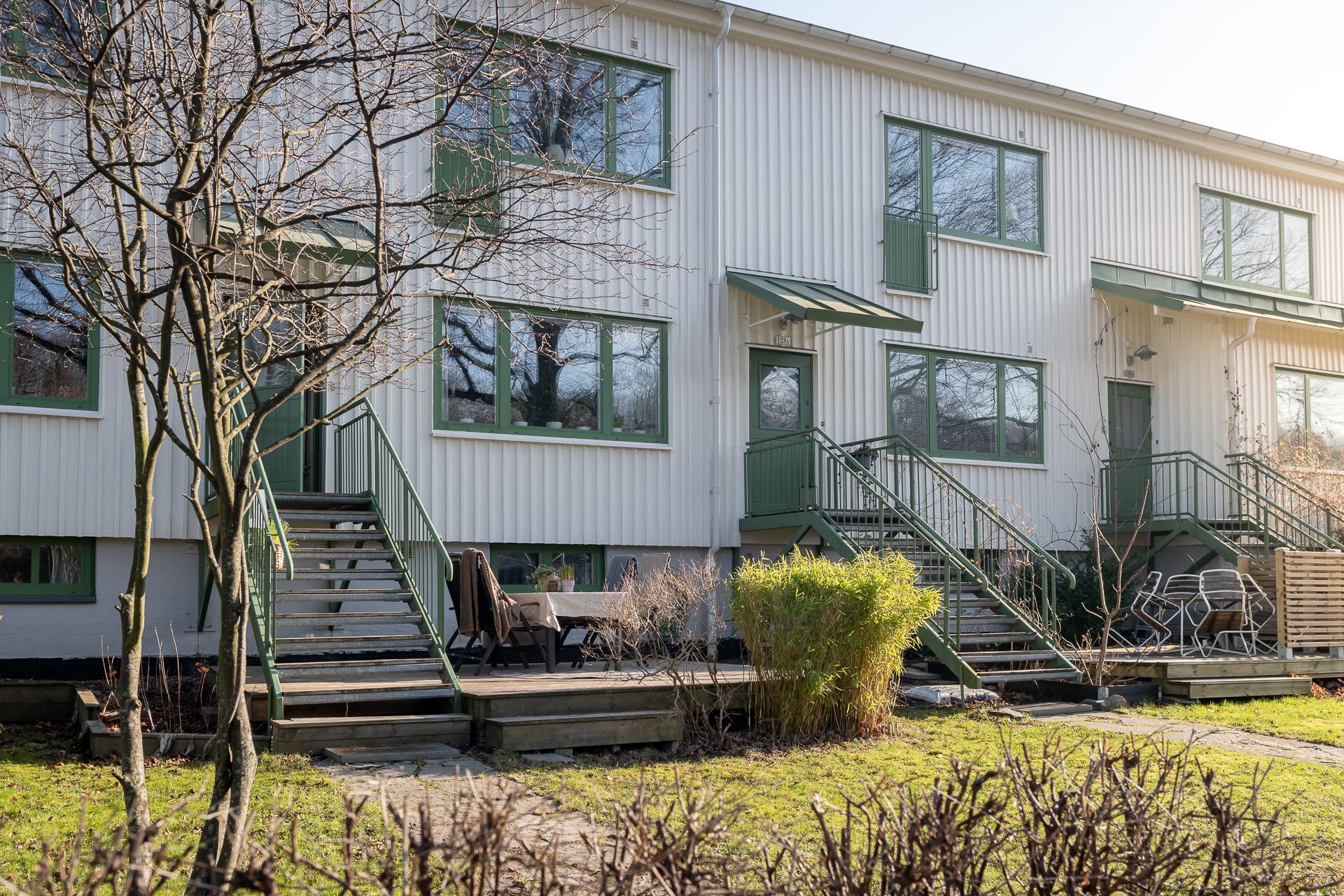 Inbäddad i grönska, fem stora kliv från Linné kan du bo med både uteplats och balkong i radhuskänsla men med bostadsrättsformens alla fördelar. En rymlig och välplanerad tvåa som kan göras till tre rum och kök. Föreningen ligger på samma gata som Botaniska Trädgården och ett stort trädgårdsengagemang finns i föreningen. Här kan du vandra längs uteplatserna och inspireras. Den goda grannsämjan präglar boendet och det finns bland annat en stor prunkande gemensam trädgård med flera bersåliknande sittplatser. Ta gärna ett varv runt huset och njut av ett grönskande läge mitt i stan.