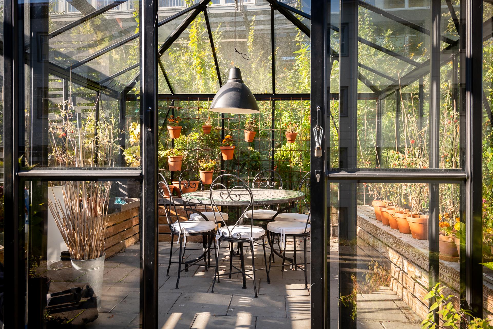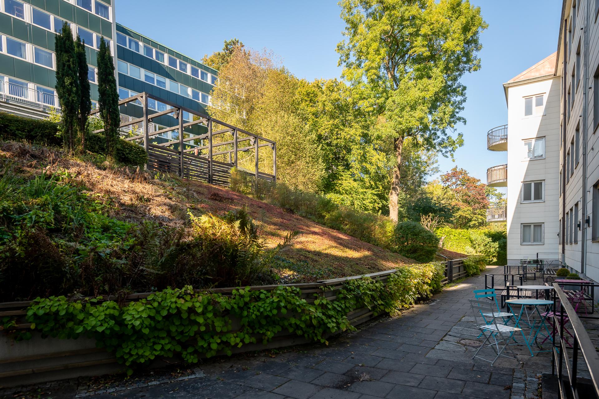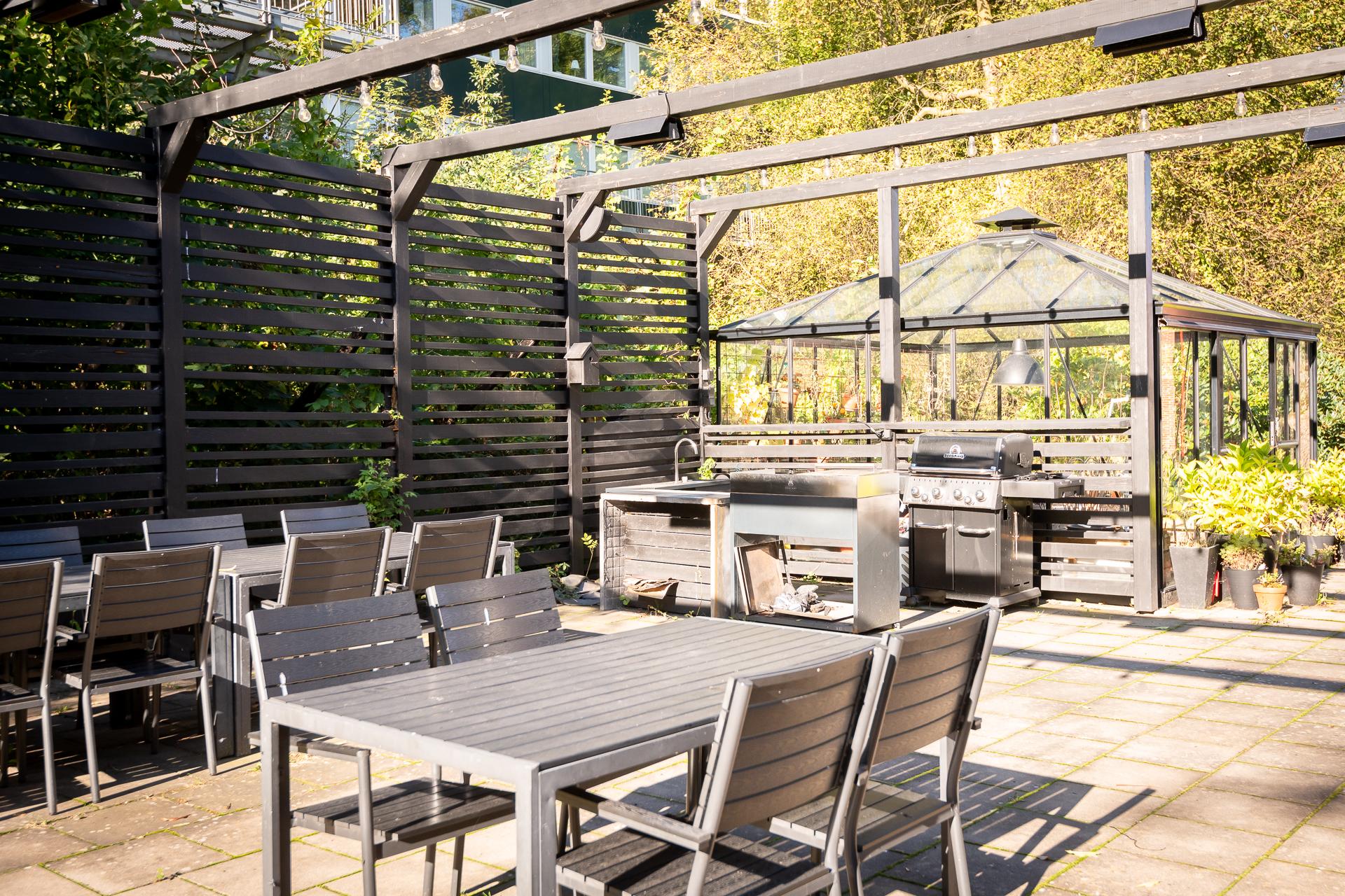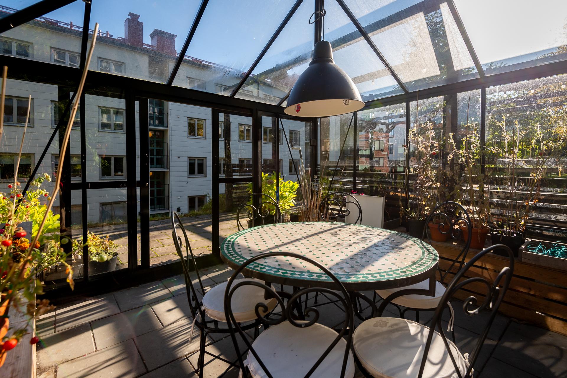 - Balkong/Uteplats: Ja. Föreningen har en fantastisk uteplats på husets baksida med många sittplatser, grill samt pergola med odlingsmöjligheter.