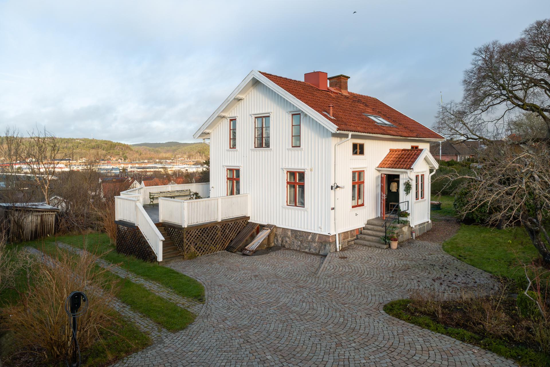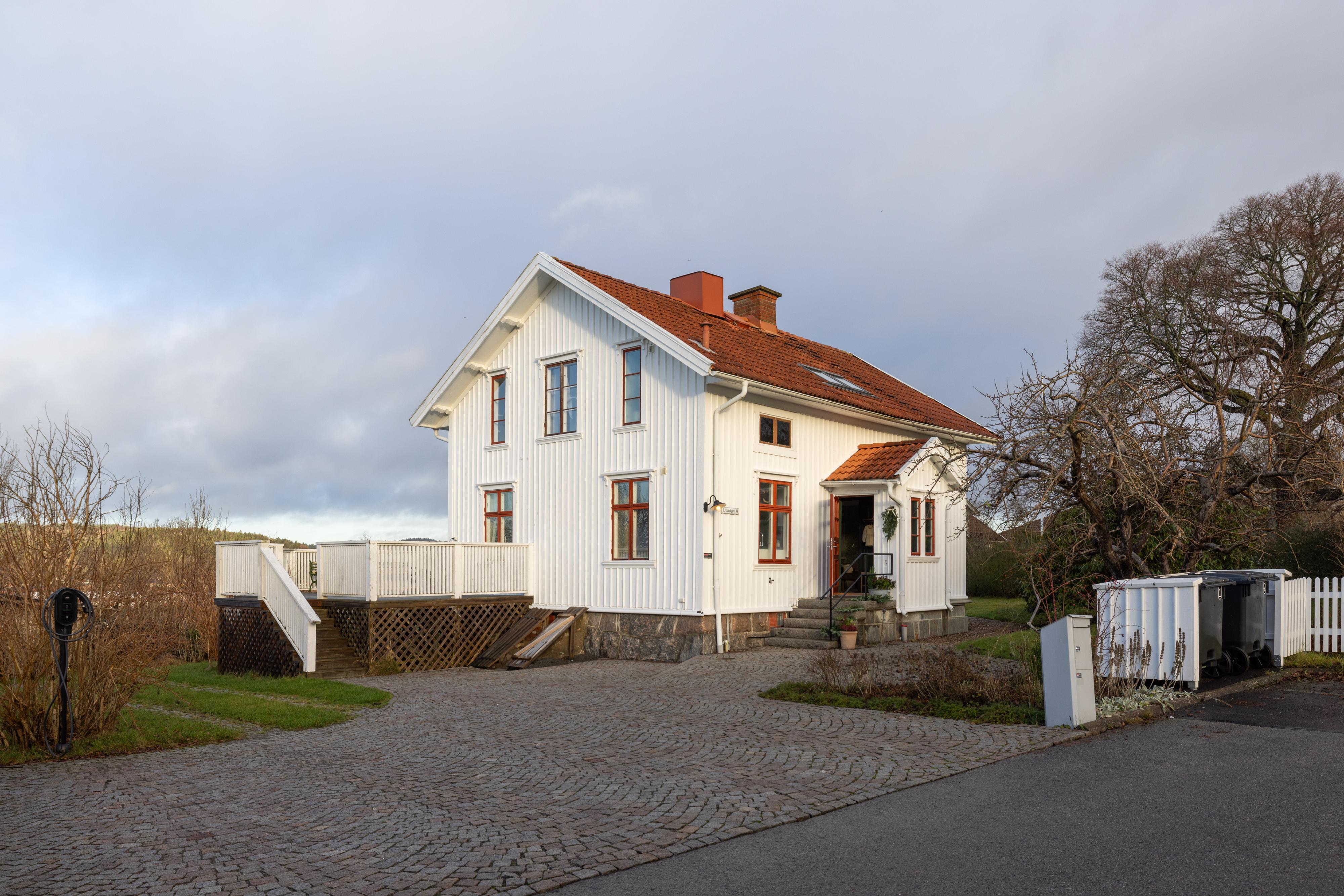 Villan på Eriksvägen 36 uppfördes redan 1910 och är en av Sävedalens äldsta. Det mycket vackra huset är välbyggt och står stadigt på en gedigen naturstensgrund. Ljusinsläppet från de fina originalfönstren med avtagbara vinterbågar är något utöver det vanliga, och på vintern skapar kakelugnen och den gamla vedspisen en otroligt mysig känsla. Allt är varsamt renoverat och moderniserat, och bevarade originalsnickerier såsom spegeldörrar och lister samsas med fina materialval som harmonierar med byggnadsåret. Vardagsrummet är voluminöst och i matsalen, som förenas med köket i en öppen planlösning, finns det plats för att samla släkt och vänner för middagar, högtidsfiranden och födelsedagskalas. Under den varmare delen av året är det även trevligt att sitta och äta i glasverandan eller ute på den stora altanen med kvällssol och makalös utsikt över Sävedalen in mot Göteborg. Husets övervåning är en privat sfär med tre sovrum, två klädkammare, ett badrum med badkar och en övre hall med platsbyggda bokhyllor och utrymme för skrivbord. Ytterligare ett badrum finns i anslutning till entrévåningens inre hall, och källaren inrymmer bland annat en välutrustad tvättstuga.