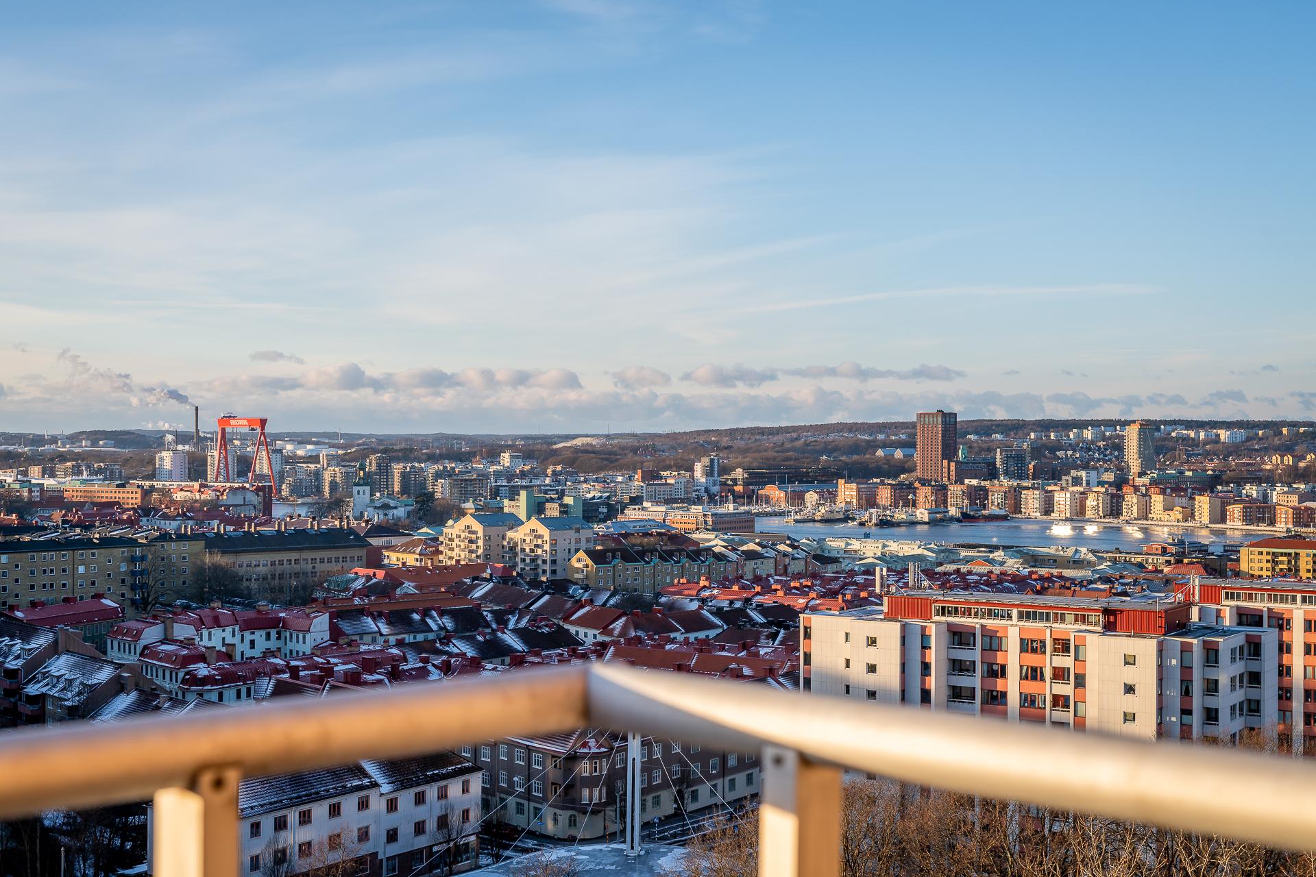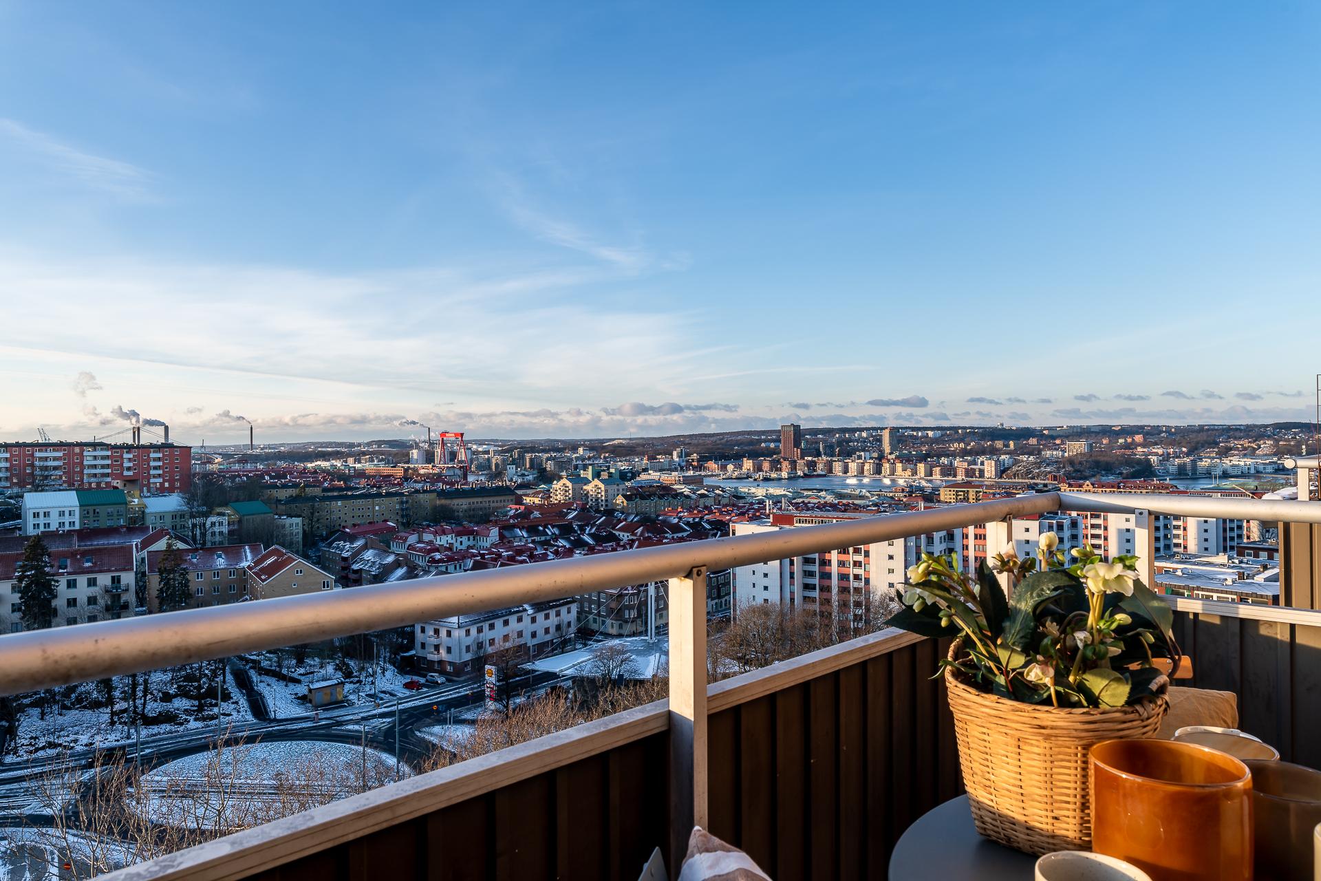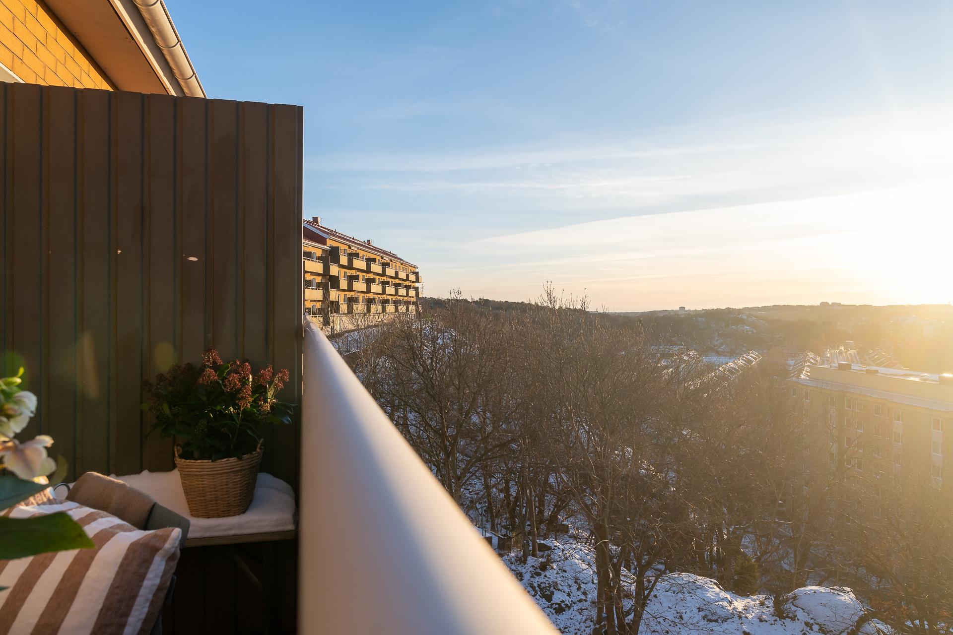 Högst upp i huset på Masthuggsbergets topp, ett stenkast från Slottsskogen ligger den här tvåan med balkong i bästa västerläge, väl omhändertagna kvadratmeter och i gott skick. Högt och härligt med en av stans bästa utsikter ut mot hamninloppet och sol från tidig lunch till solnedgång. Helt obelånad och omtyckt förening där bredband ingår i avgiften, dessutom med bastu och övernattningslägenhet!
