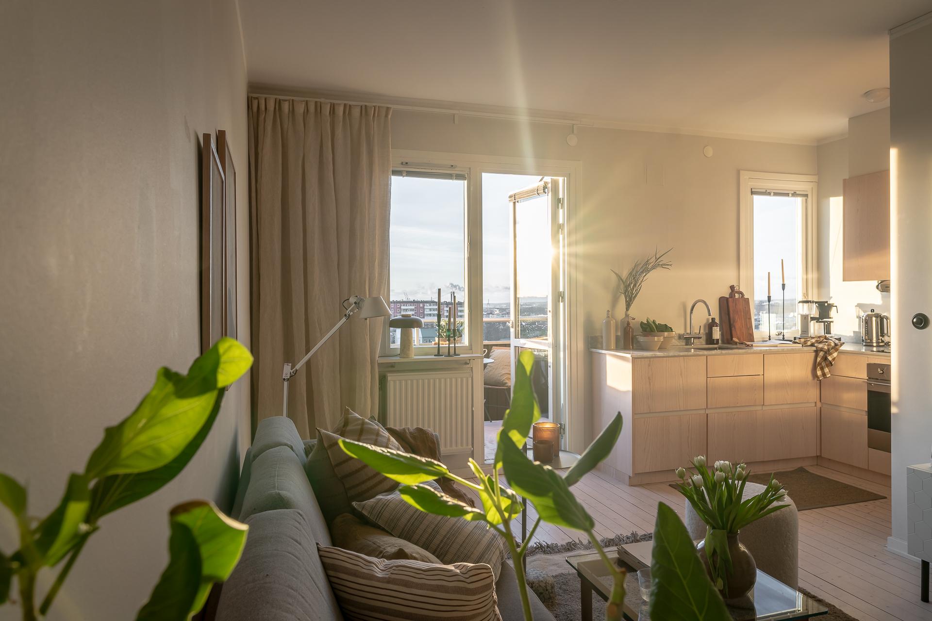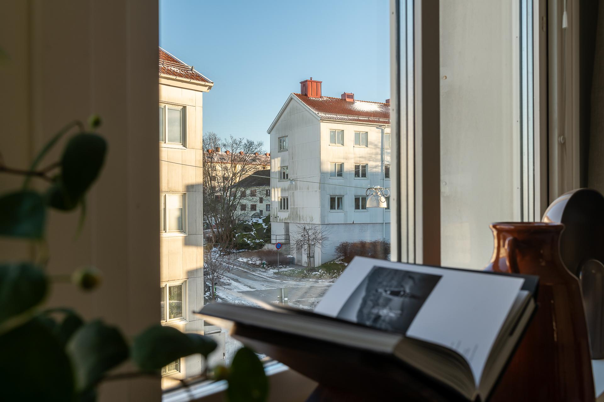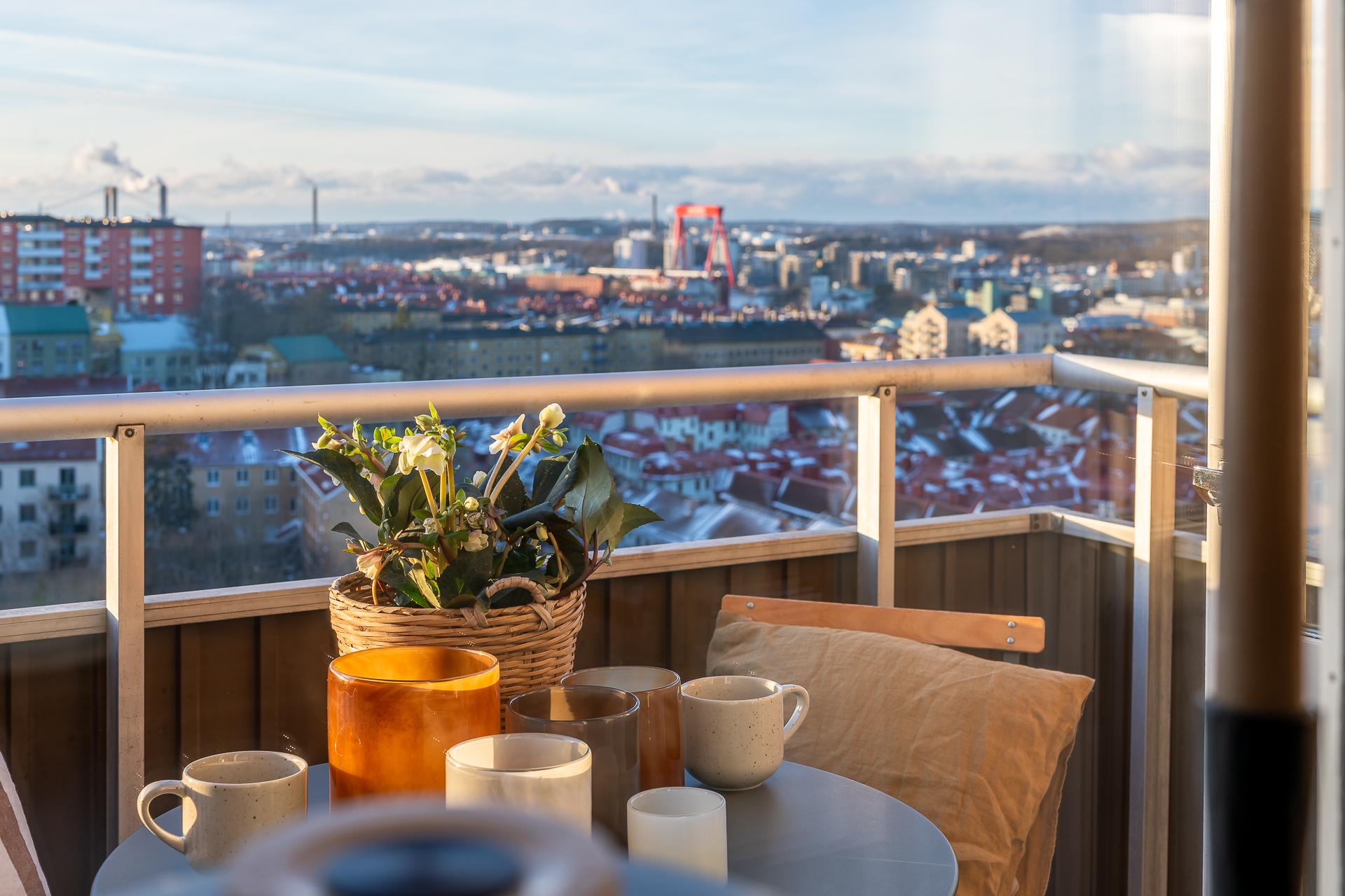 Högst upp i huset på Masthuggsbergets topp, ett stenkast från Slottsskogen ligger den här tvåan med balkong i bästa västerläge, väl omhändertagna kvadratmeter och i gott skick. Högt och härligt med en av stans bästa utsikter ut mot hamninloppet och sol från tidig lunch till solnedgång. Helt obelånad och omtyckt förening där bredband ingår i avgiften, dessutom med bastu och övernattningslägenhet!