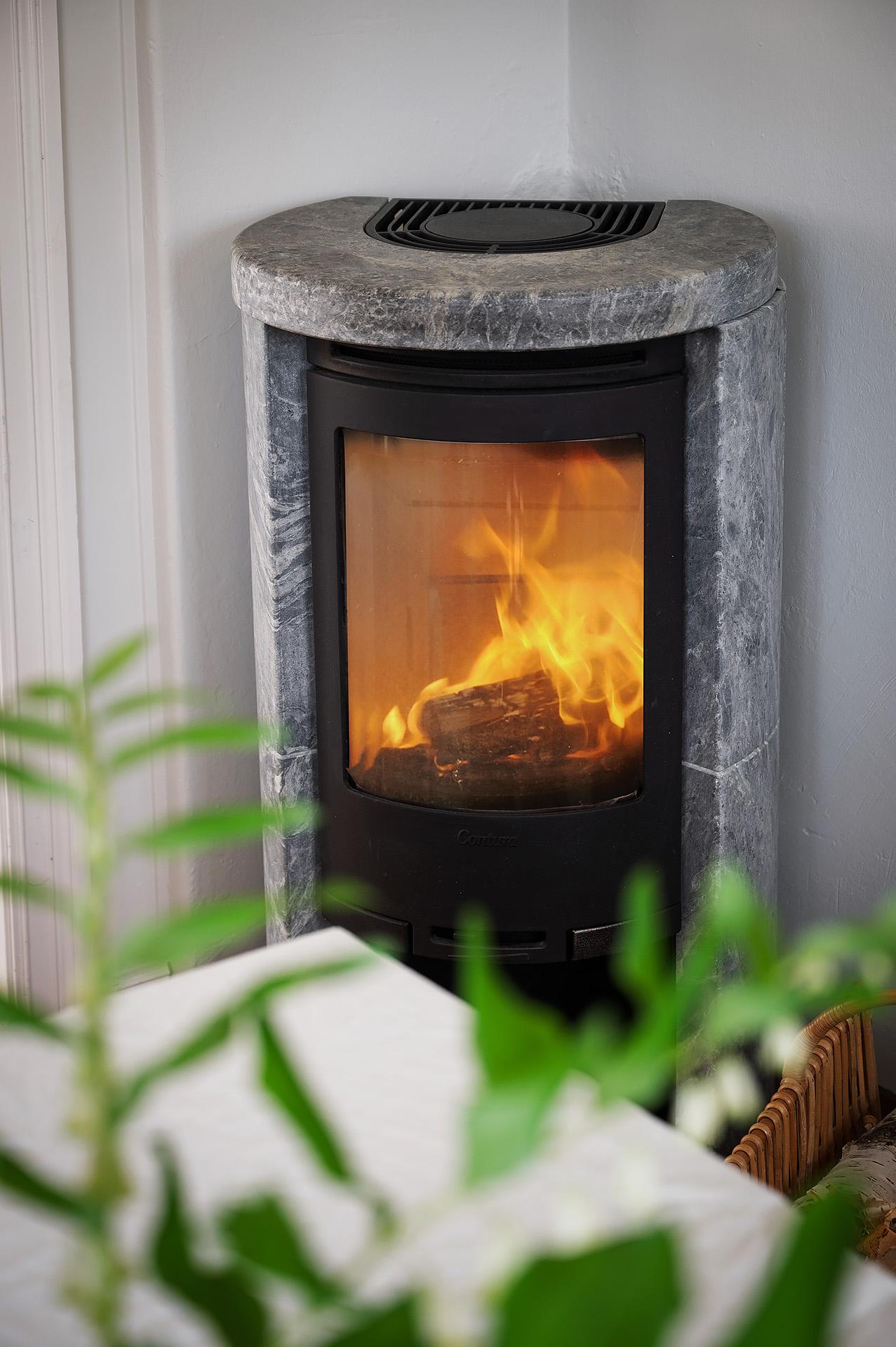 Uppvärmning: Direktverkande el med el-radiatorer. 1 st luft/luft-värmepump. Braskamin