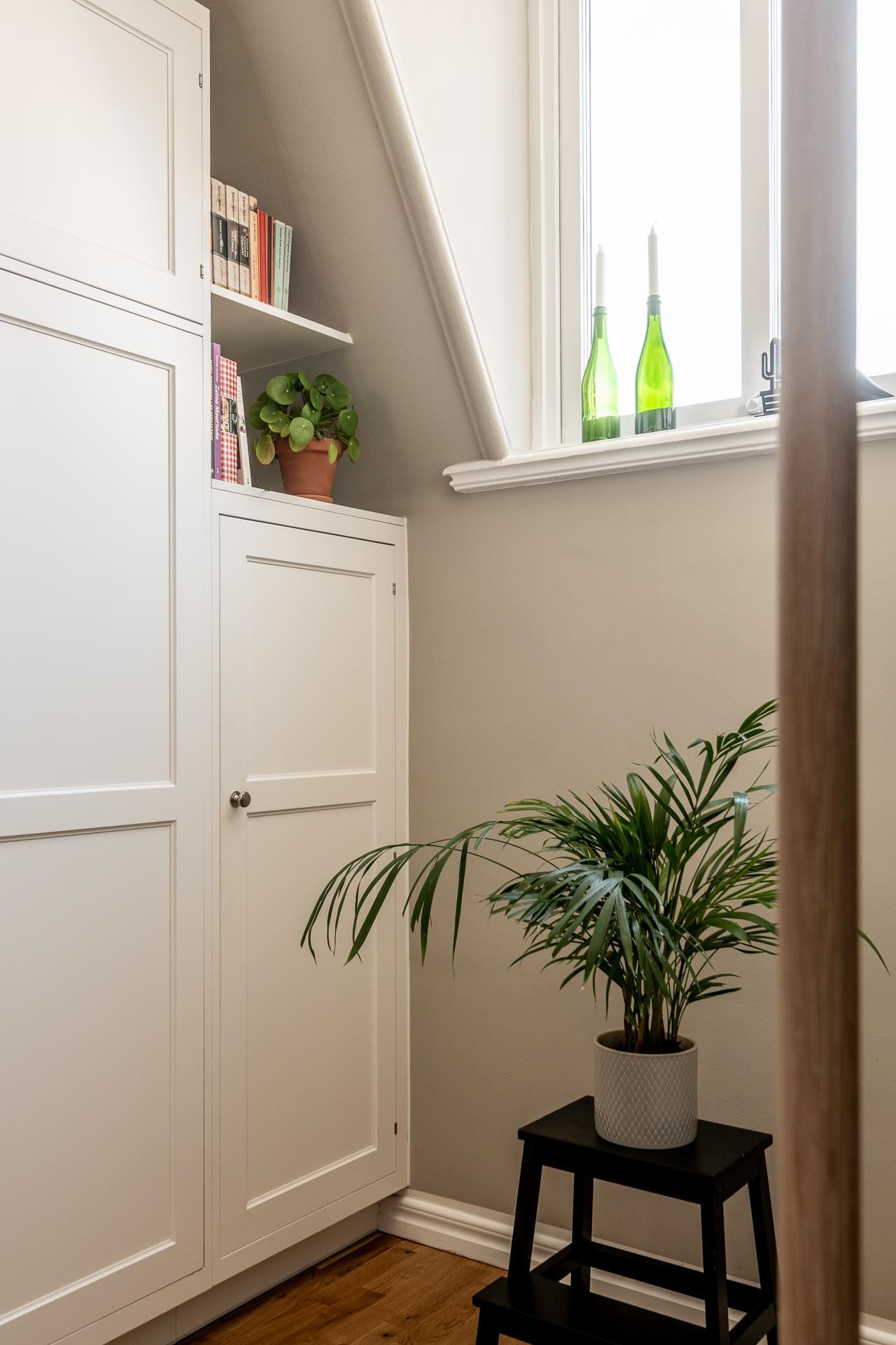 Genom åren har oändliga timmar lagts på att förfina och förädla lägenheten. Samtliga väggar har renoverats till perfektion där gamla lager har skrapats ner och bredspacklats för att sen målas i behagliga toner som samspelar med varandra. Badrummet har fått sig ett ansiktslyft med ny utrustning och tvättpelare, och det senaste tillskottet är det underbara köket som lät byggas så sent som 2021, en dröm för er som gillar att laga mat och umgås. Mötet mellan det moderna och det tidstypiska är mycket lyckat och lägenheten är på många sätt unik då den kombinerar vindskaraktär och sekelskifte på ett förträffligt sätt. Att större delen av lägenheten ligger allra högst upp i huset är också för många något man bara kan drömma om.