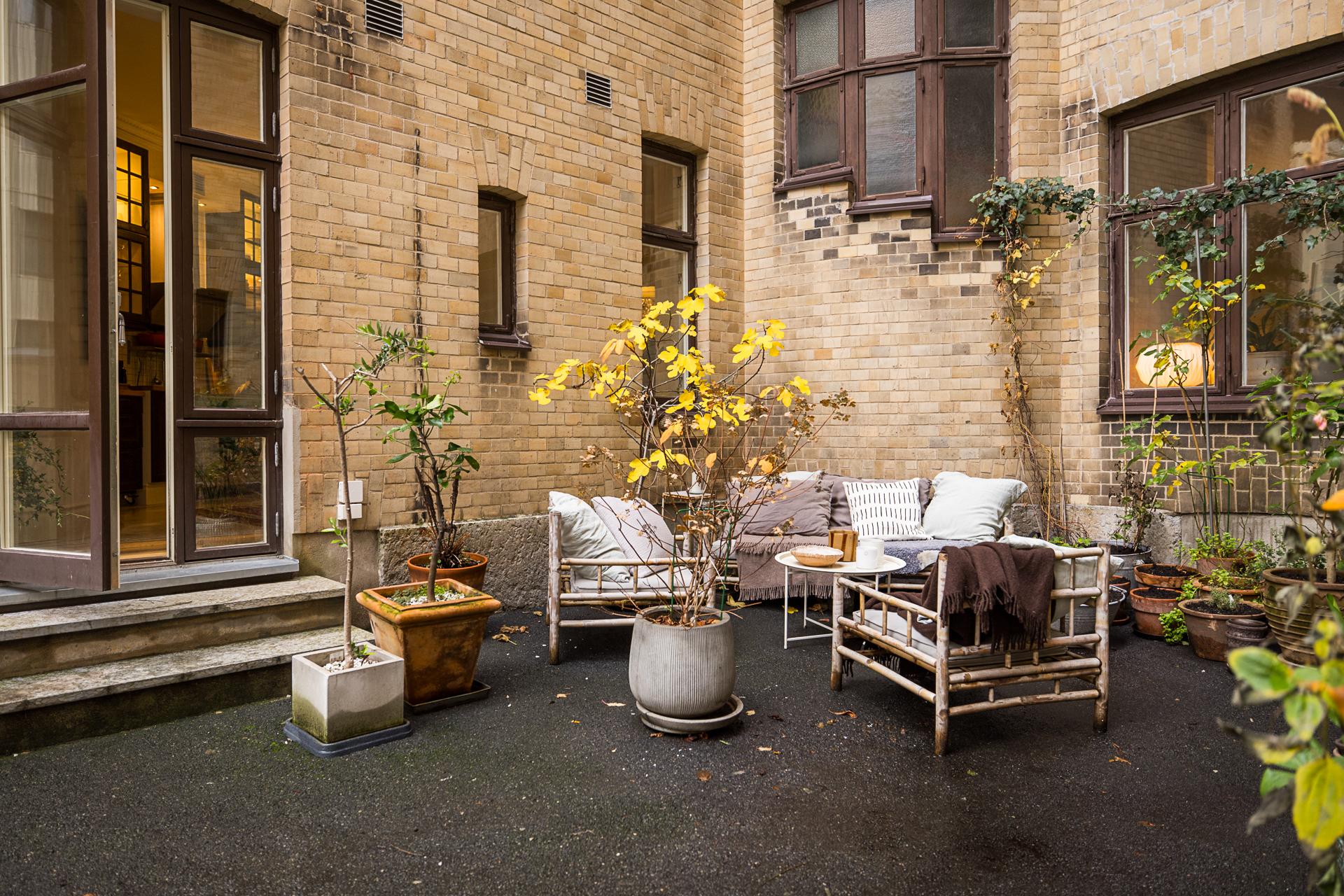 Sällsynt chans att förvärva en unik tvårummare av det bättre slaget. Ett starkt möte mellan Sydeuropa och svensk nationalromantik. Löpande renoverad med stor respekt för huset och dess historia. Trots sitt centrala läge erbjuds en stor terrass om 13 kvadrat mot gatan med eftermiddagssol och en delad uteplats mot innergården vilket ger radhuskänsla mitt i stan. Pampiga fönster med wow-faktor och ett mycket gott skick gör att ni kan flytta in direkt. Föreningen är välskött och äger en väl omhändertagen fastighet från 1913 där bredband ingår i avgiften. Välkomna att boka er på visning och välkomna hem!