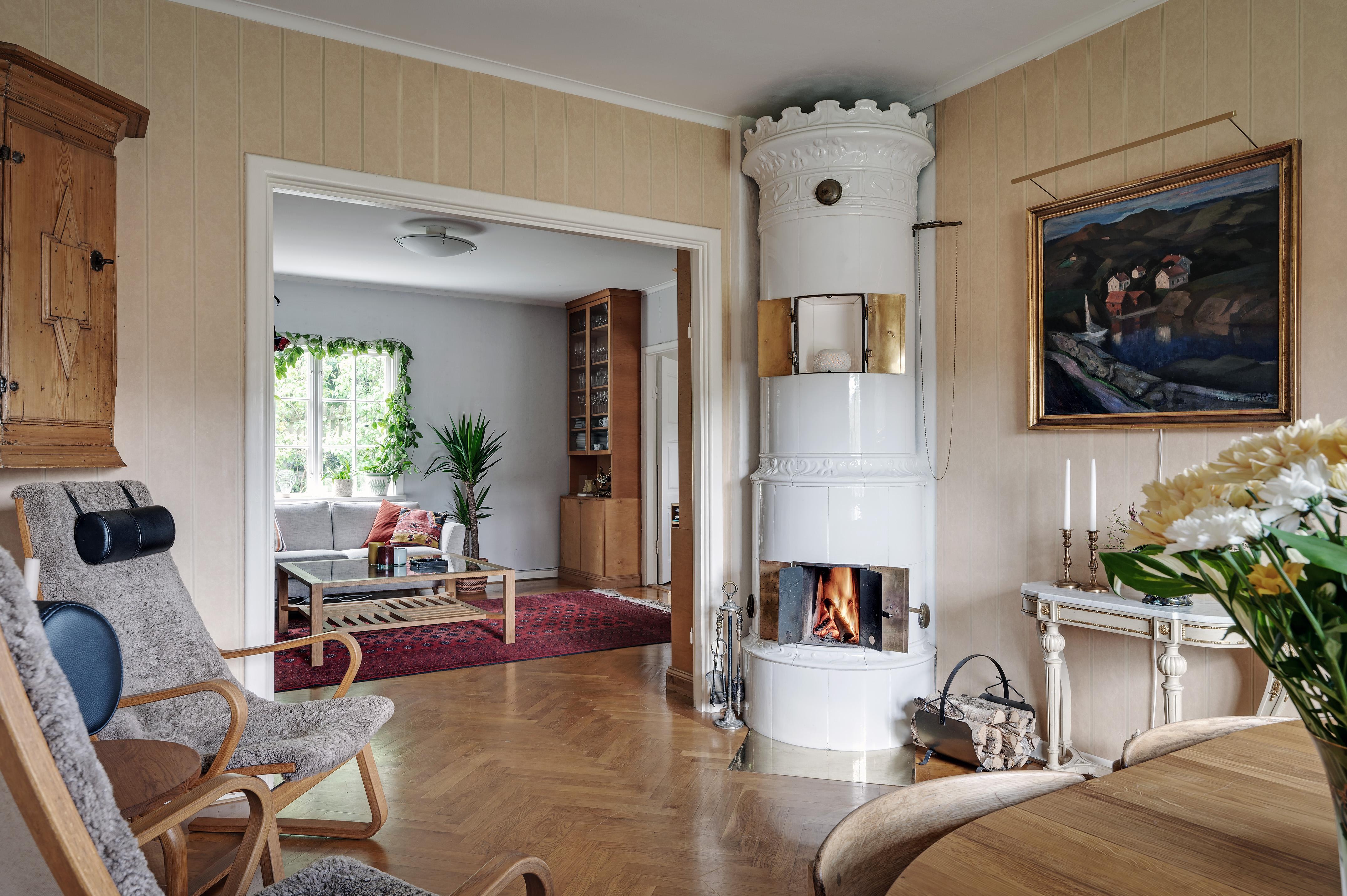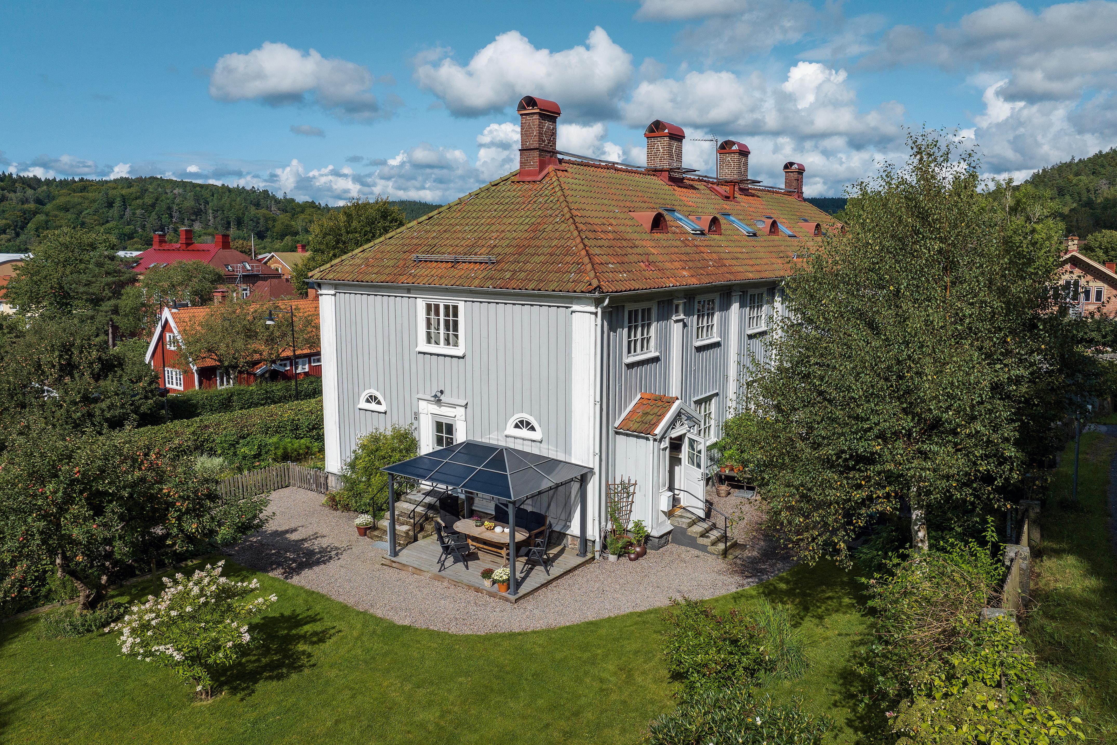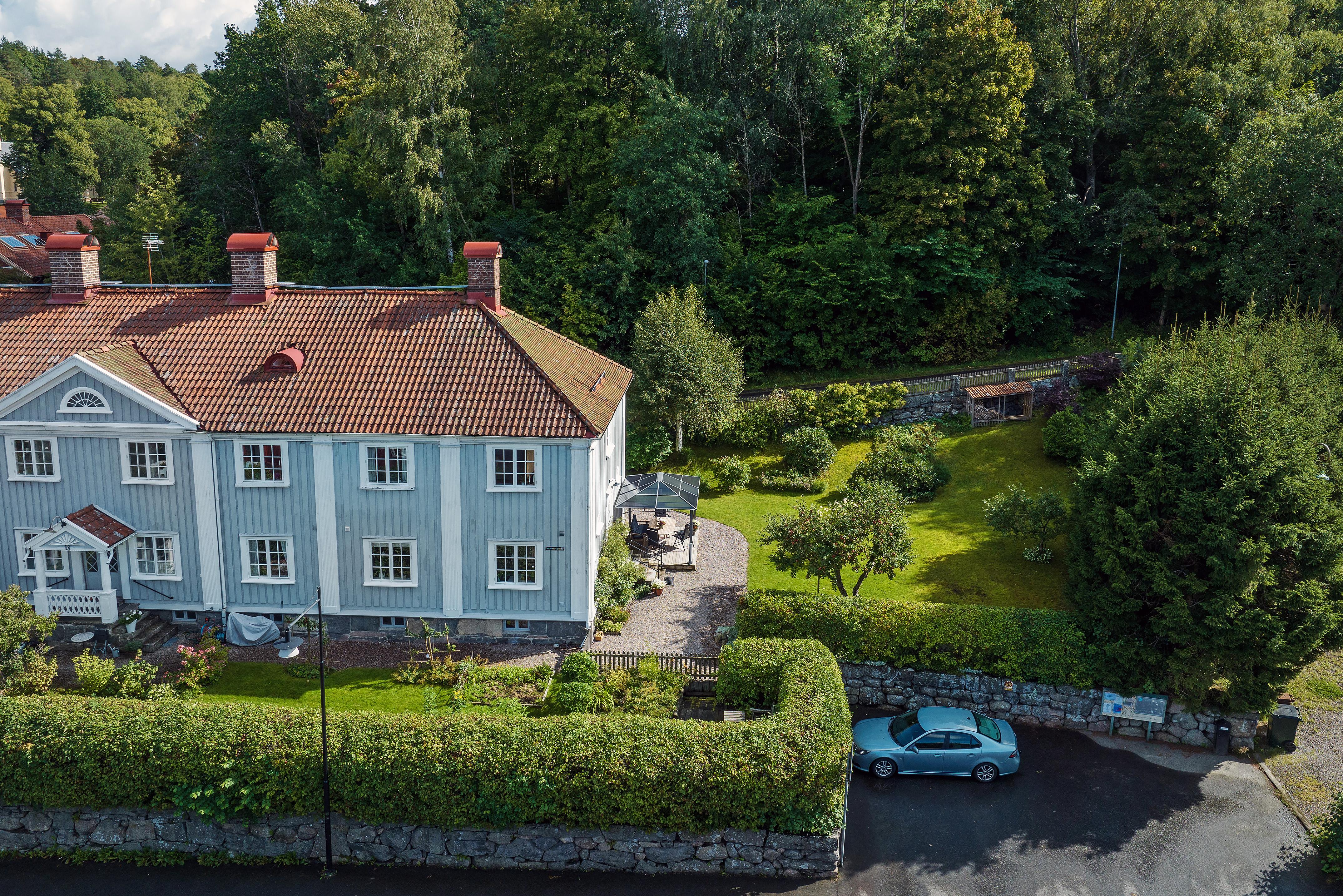 Välkommen till ett underbart boende i en levande, kulturhistorisk miljö tio minuter utanför Göteborg! Nu är en av få, stora lägenheter till salu i eftertraktade Jonsered. Stor och ljuvlig gavellägenhet i två hela plan med tillhörande vind och källare i vackert trähus från 1918. Här finns vackra fiskbensmönstrade ekparketter, spröjsade fönster med stort ljusinsläpp, en fungerande kakelugn för kulna höst- och vinterkvällar samt dörrar omgärdade av pilastrar och halvkolonner. Utanför finns en stor och lummig trädgård med fruktträd. Med lägenheten följer en p-plats. Efter 38 år kommer nuvarande ägare att lämna över sitt älskade hem till nästa med förhoppningen att även de nya ägarna kommer att trivas lika väl! Tillträde: september 2024 eller enligt överenskommelse. Passa gärna på i samband med visningen att titta runt i Jonsered; här finns Poppels, Brödfabriken, Jonsereds trädgårdar med tillhörande kafé samt vackra vandringsleder - eller varför inte bara promenera runt i byn? Varmt välkommen hem!