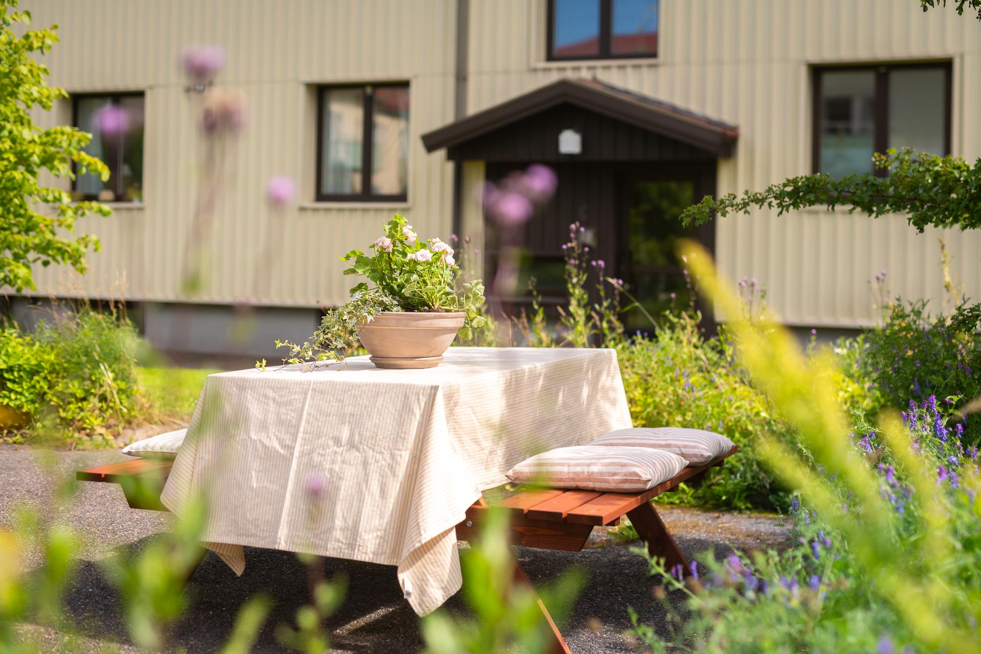 - Balkong/Uteplats: Nej. Gemensam trädgård med utemöbler och gräsmatta som är solig hela dagen.