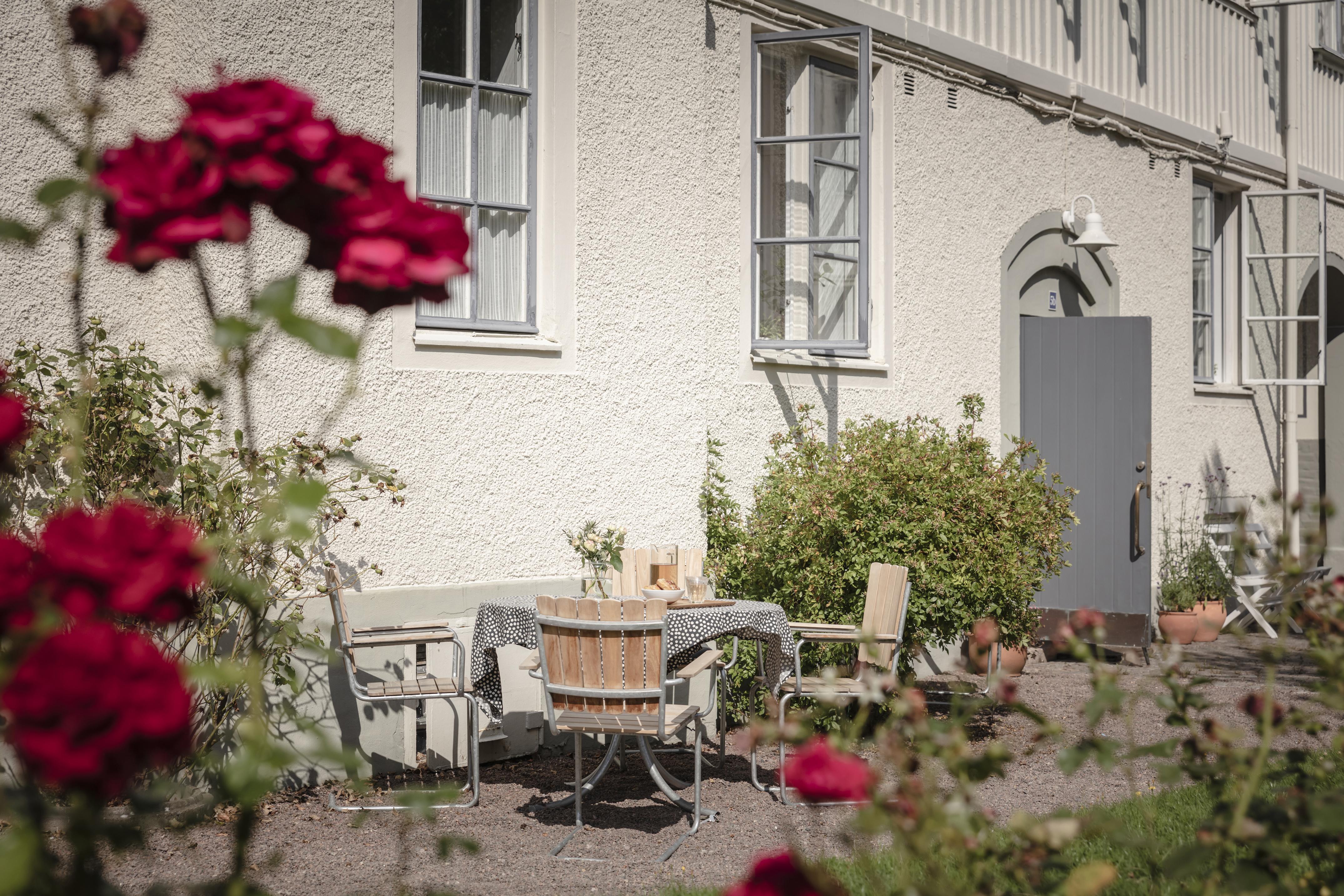 - Balkong/Uteplats: Nej. Otroligt vacker gård med blomster rabatter, uteplatser och sol hela dagen.