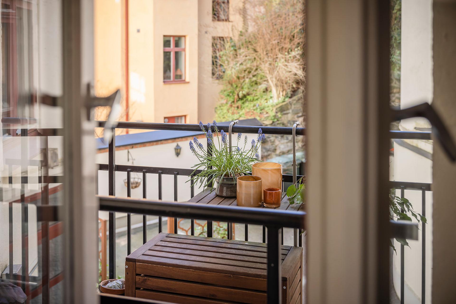 - Balkong/Uteplats: Ja. Delad balkong mot innergård