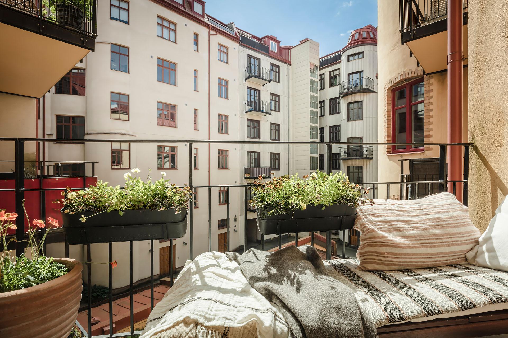 - Balkong/Uteplats: Ja. Stor och skyddad balkong i söderläge med utgång ifrån köket.