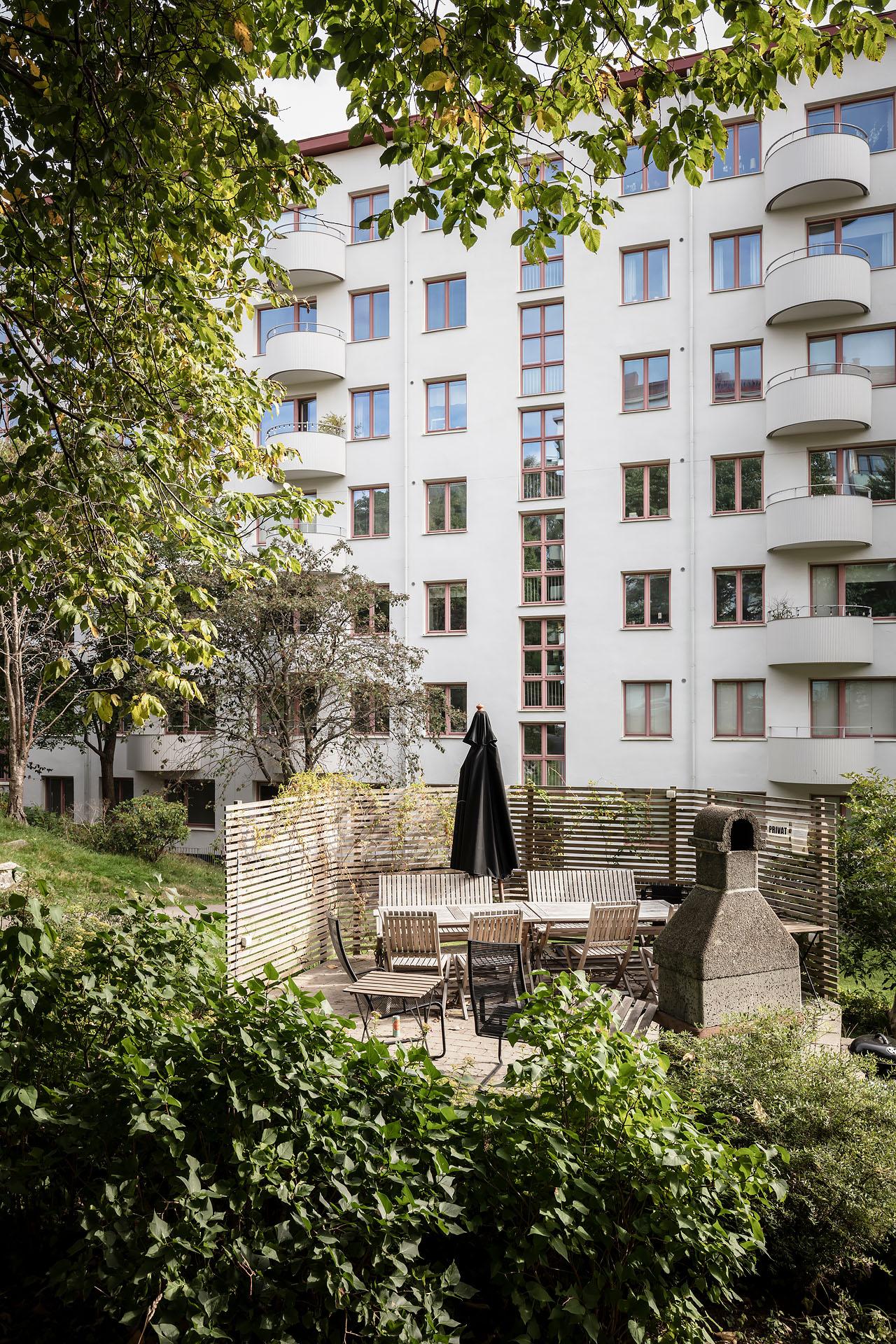 - Balkong/Uteplats: Ja. Föreningen har en stor parkliknande baksida med utemöbler och grillmöjligheter