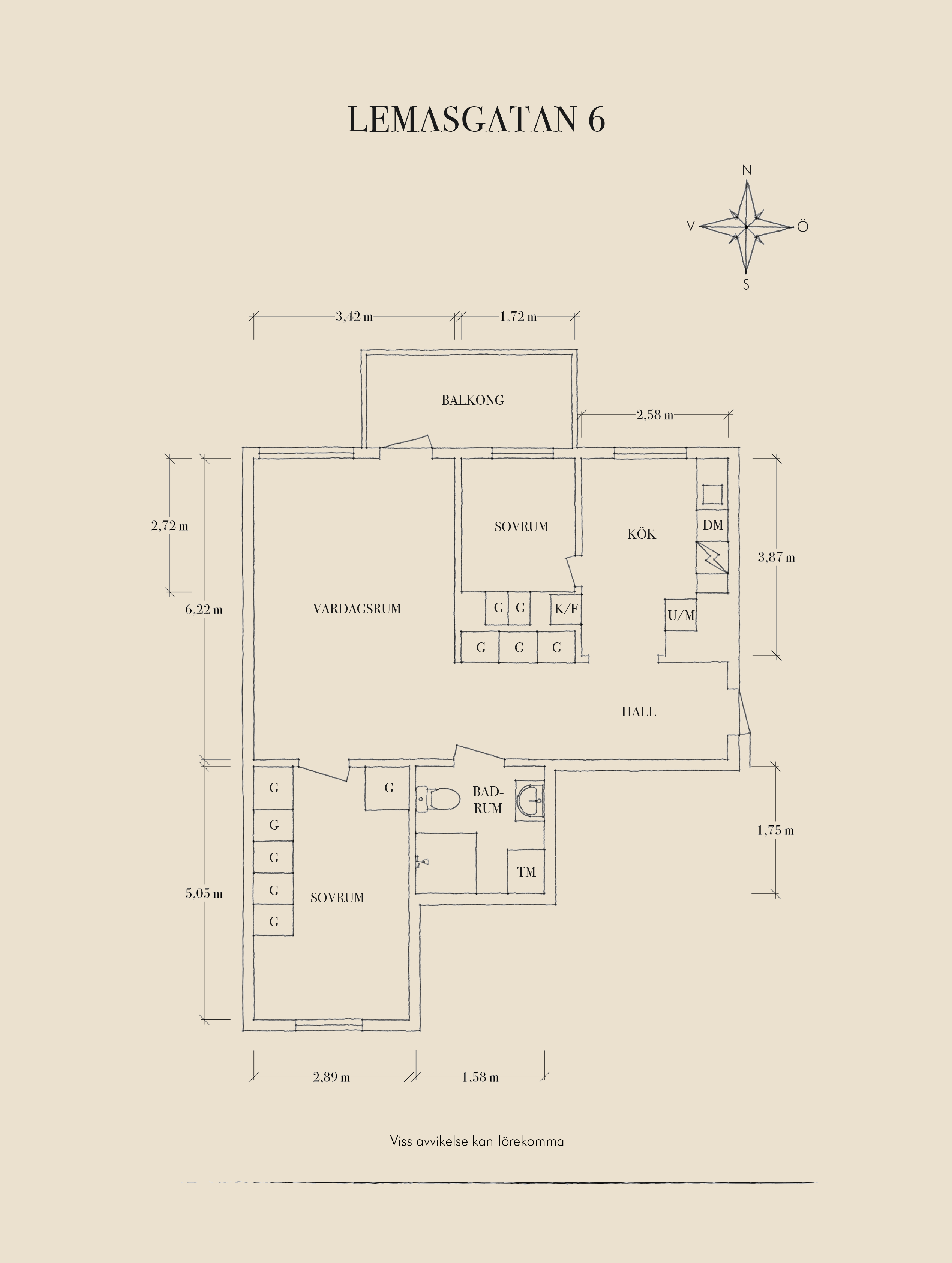 - Antal rum: 2.5 rum och kök