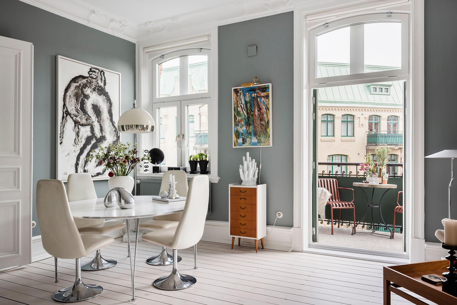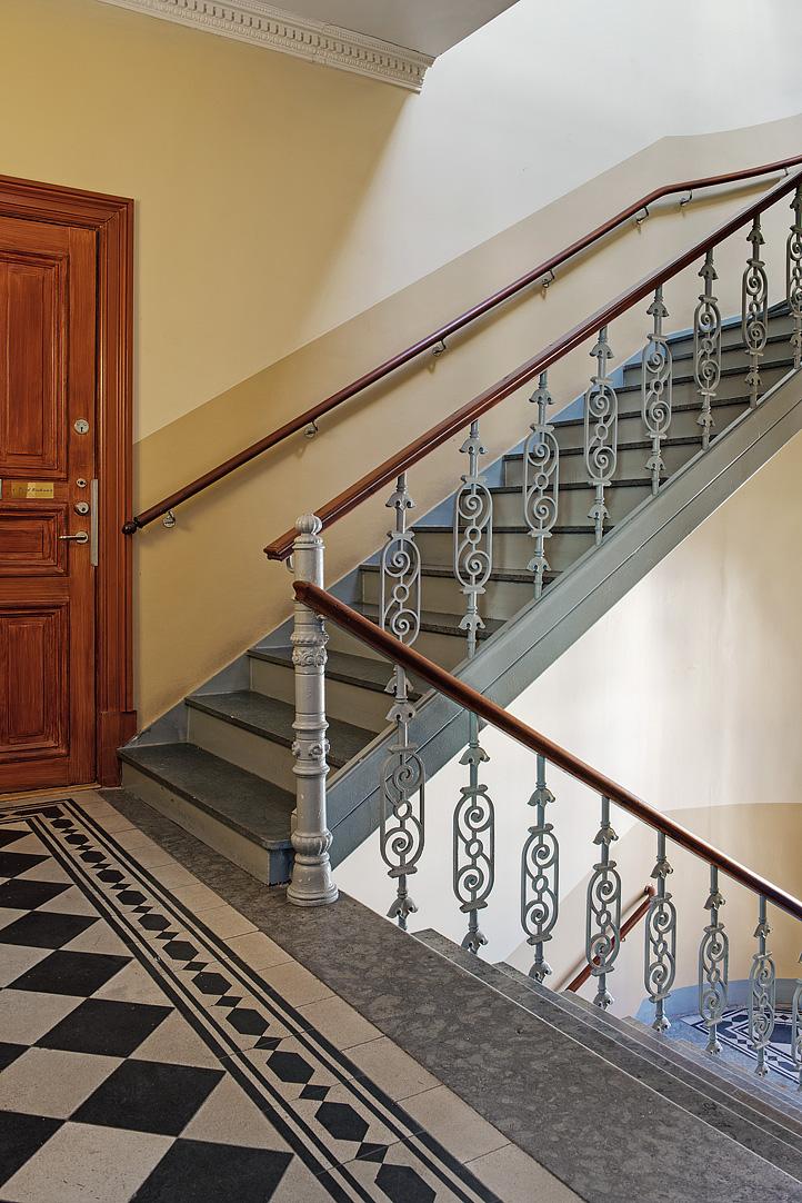 På översta originalplanet, där himlen känns som närmaste granne, väntar denna oslagbara våning om 110 kvm. Ett insynsskyddat hem med magnifik utsikt i tre väderstreck, en stor hörnbalkong och en solfjäderformad planlösning som skapar en enastående känsla av rymd. Tidstypiska detaljer såsom plankgolv, stuckaturer, kakelugnar och eleganta snickerier möter stilmedvetna materialval. Här erbjuds ett platsbyggt kök från Lidhults, ett renoverat badrum i klassisk färgsättning och ett sovrum som för tankarna till en svit på ett lyxigt boutiquhotell. Hissen går hela vägen upp till bostadsplanet. Varmt välkomna på visning!