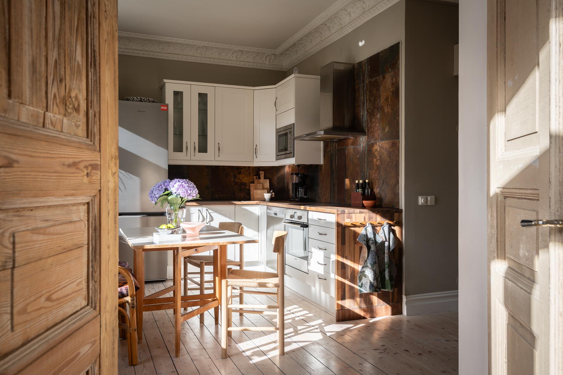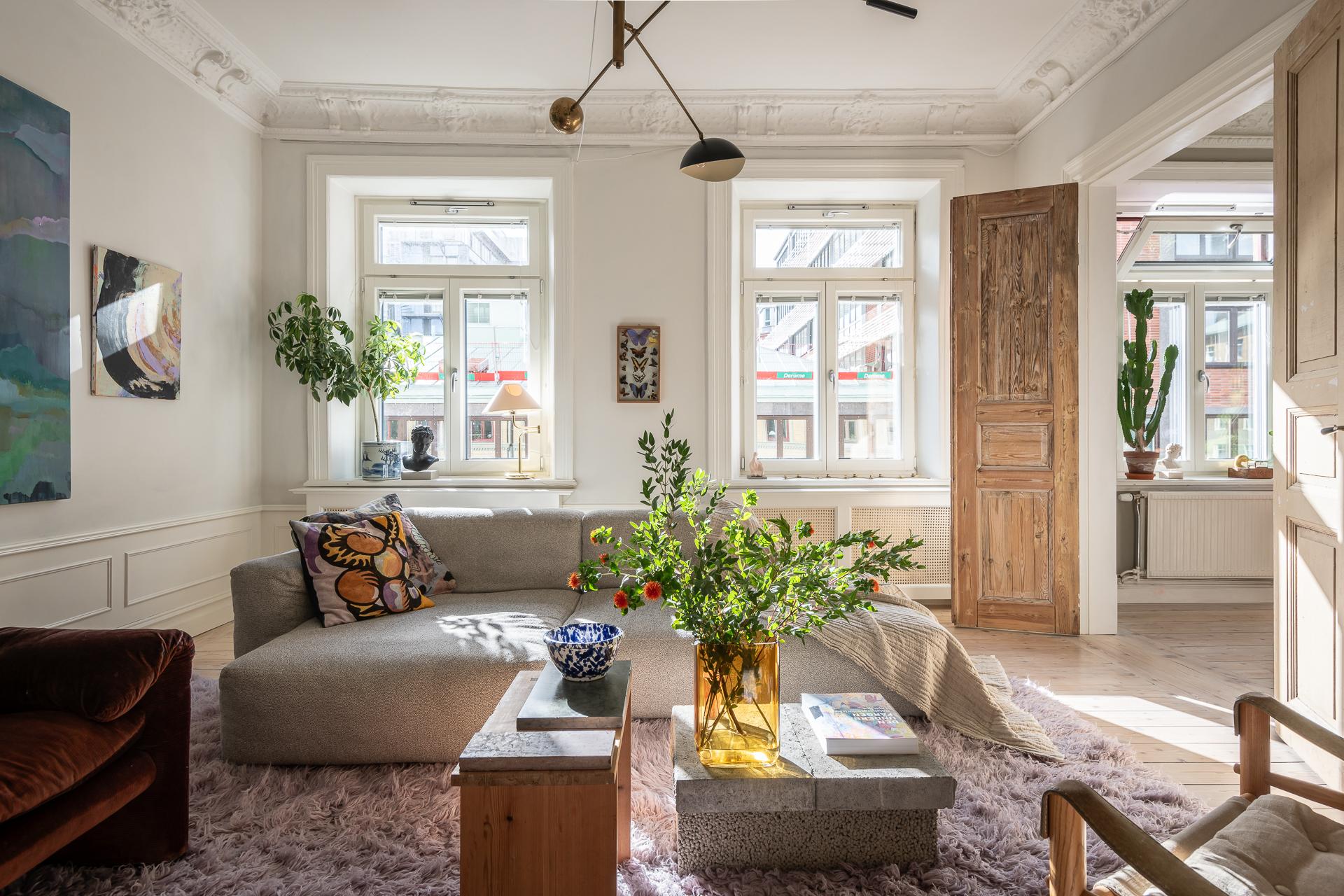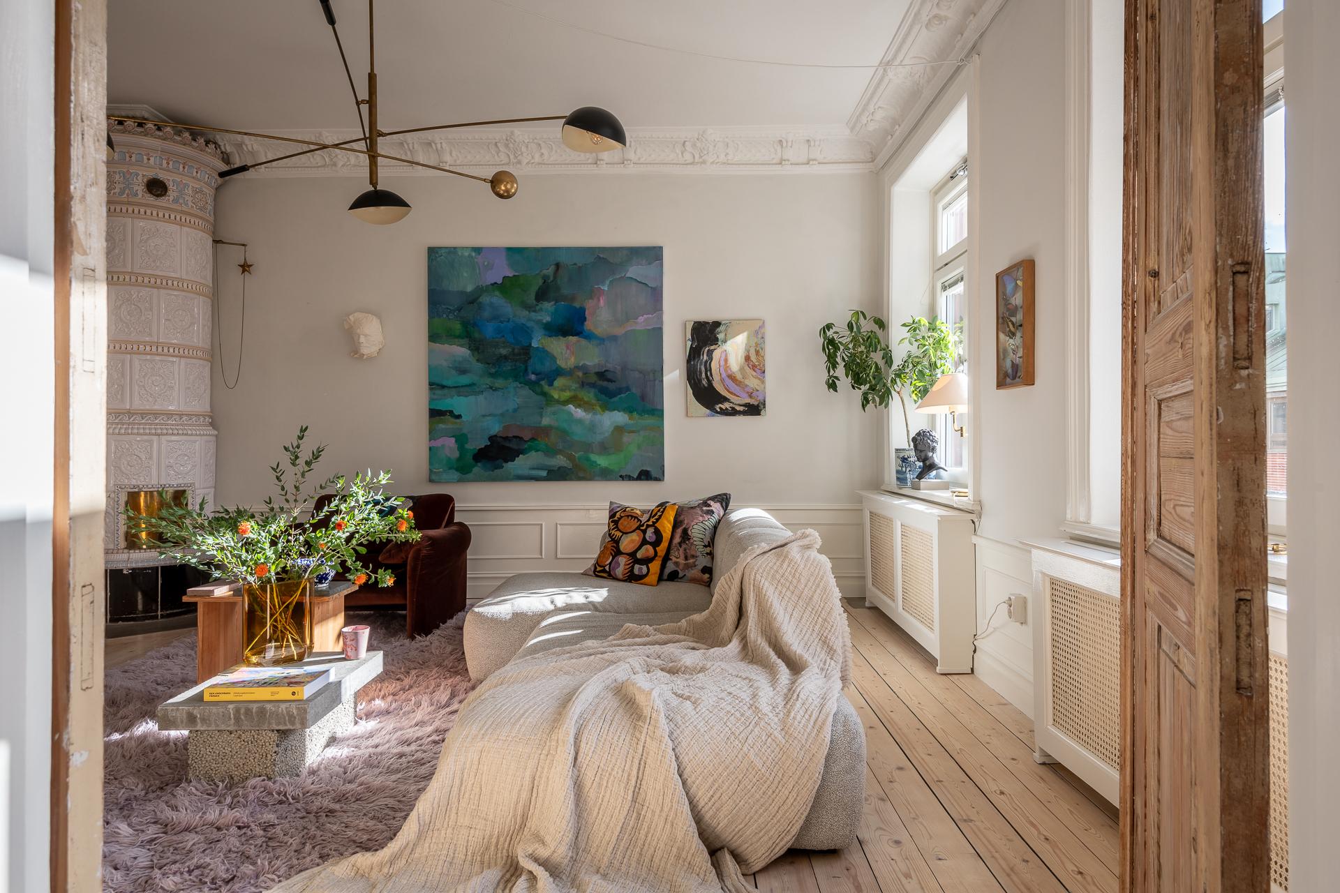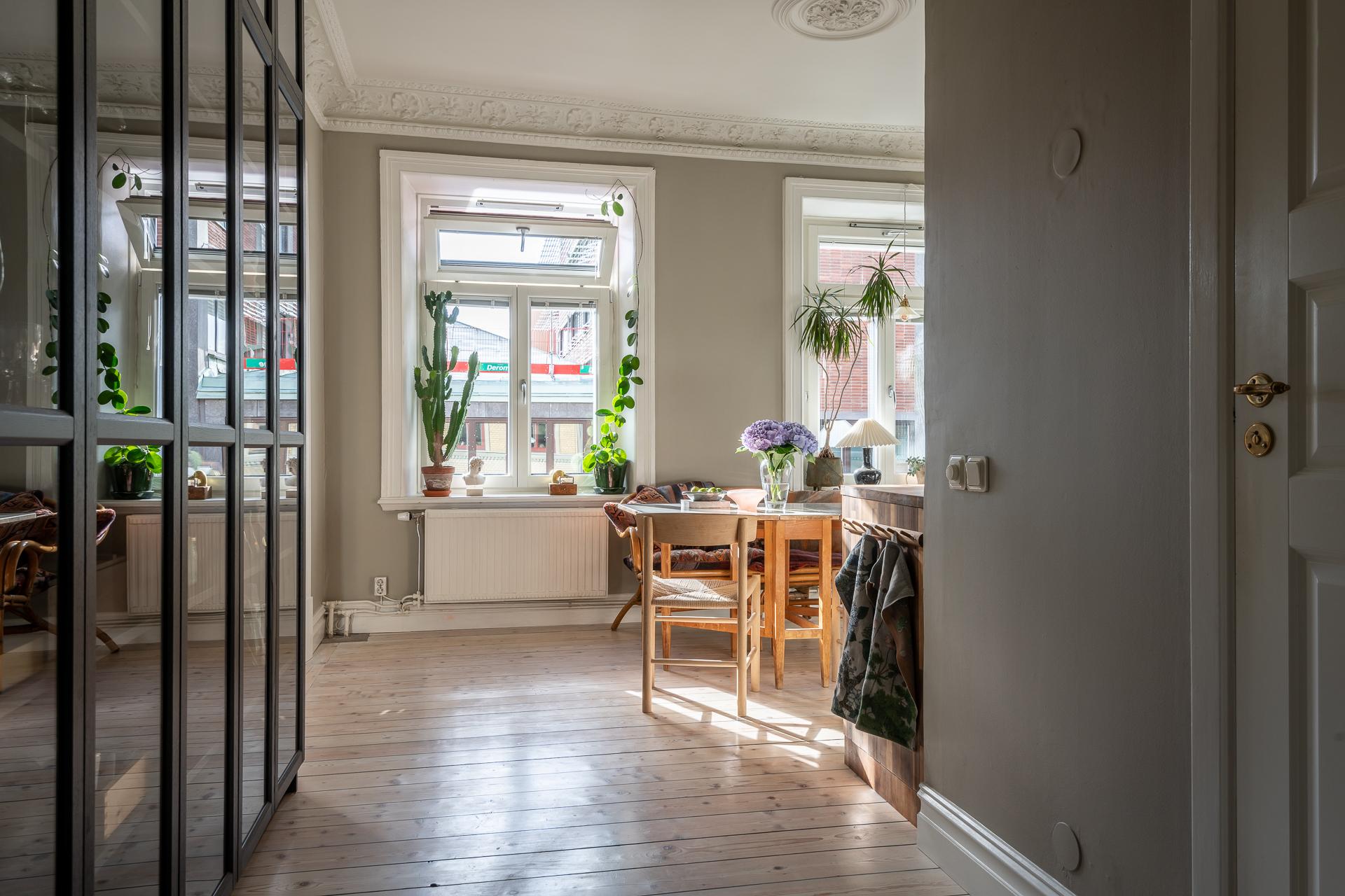Omsorgsfullt renoverad sekelskiftestvåa högst upp på våning 3/3 med en solig balkong och enormt ljusinsläpp! Genomgående ljusa, vackra brädgolv i hela lägenheten, imponerande stuckaturer, takrosetter, tre meter i takhöjd och en elegant, eldningsbar kakelugn. Stilrent badrum, ljust vinkelkök, öppen planlösning, fantastiskt ljusinsläpp från både väster och öster samt ett rofyllt sovrum mot gården. Perfekt läge i Linnéstaden, stabil bostadsrättsförening med nya fönster, relinade stammar och nyligen målade trapphus. Varmt välkomna på visning!