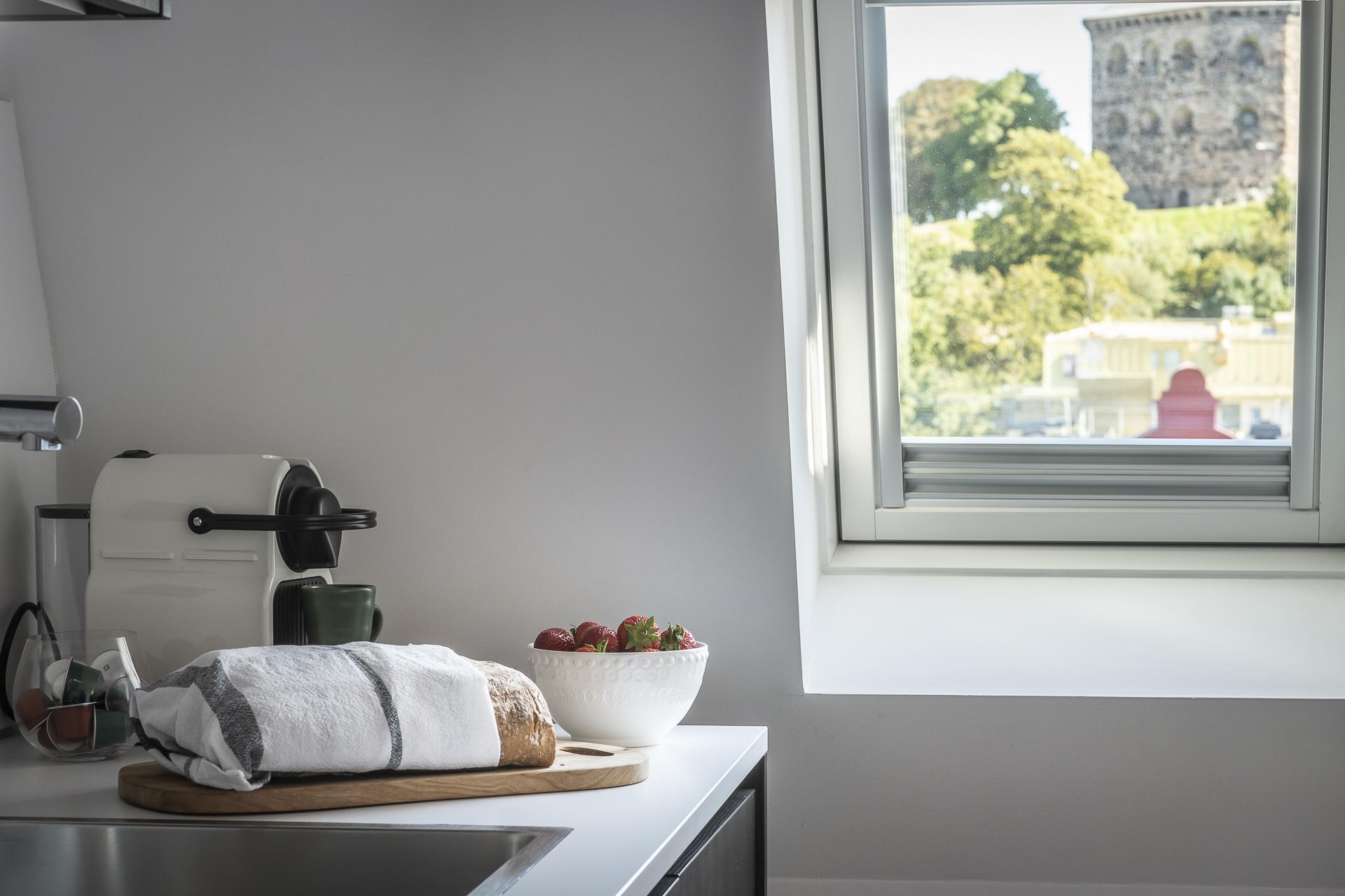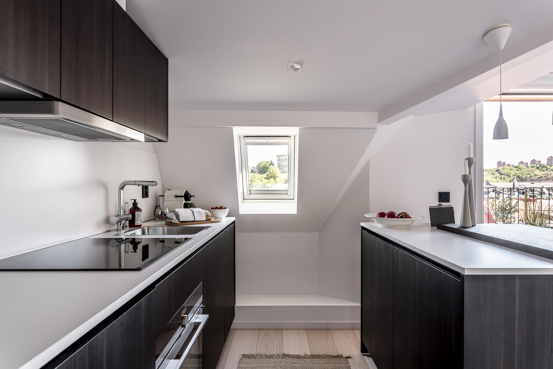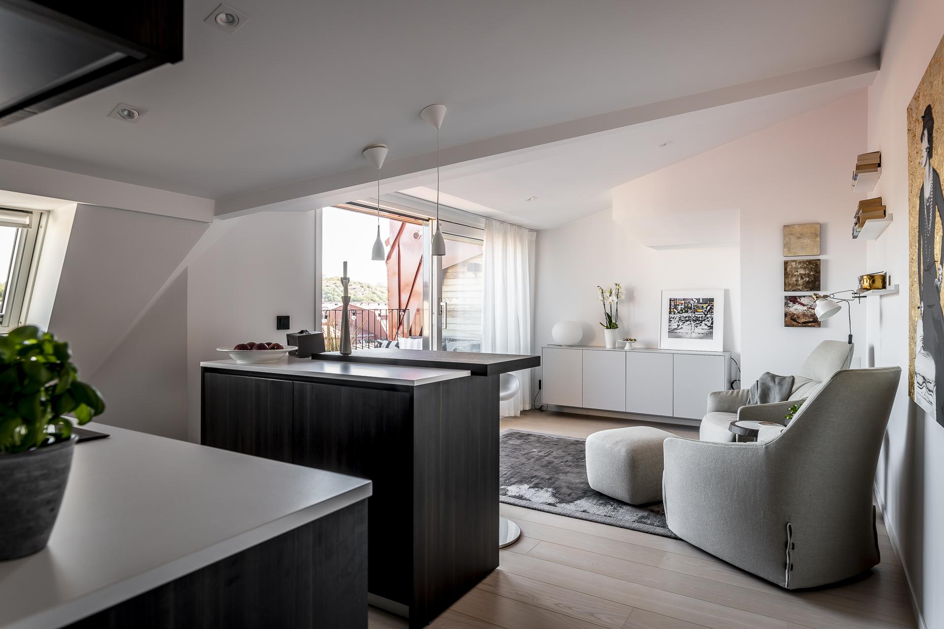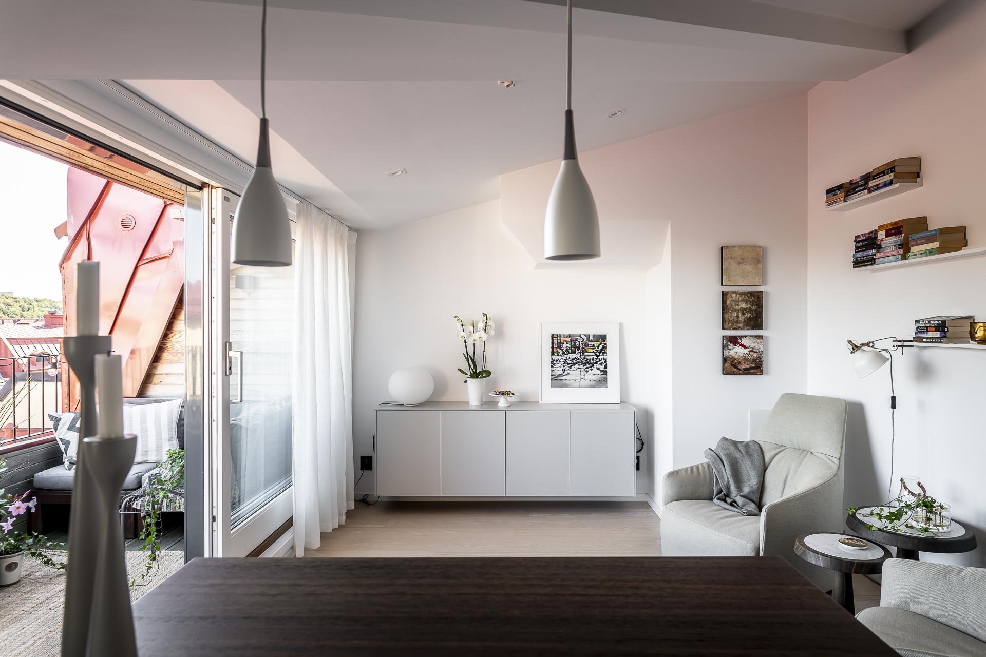 Smarta kvadratmeter i denna fantastiska minitvåa till vindslägenhet. Öppen planlösning med utgång till egen terrass på cirka fem kvadratmeter och med en ljuvlig utsikt över staden. I blickfånget hamnar Skansen Krona och läget är helt. Tillgång till den privata innerstadsparken Kråkängen. Bra förening med låga avgifter och låg belåning. Ej hiss.