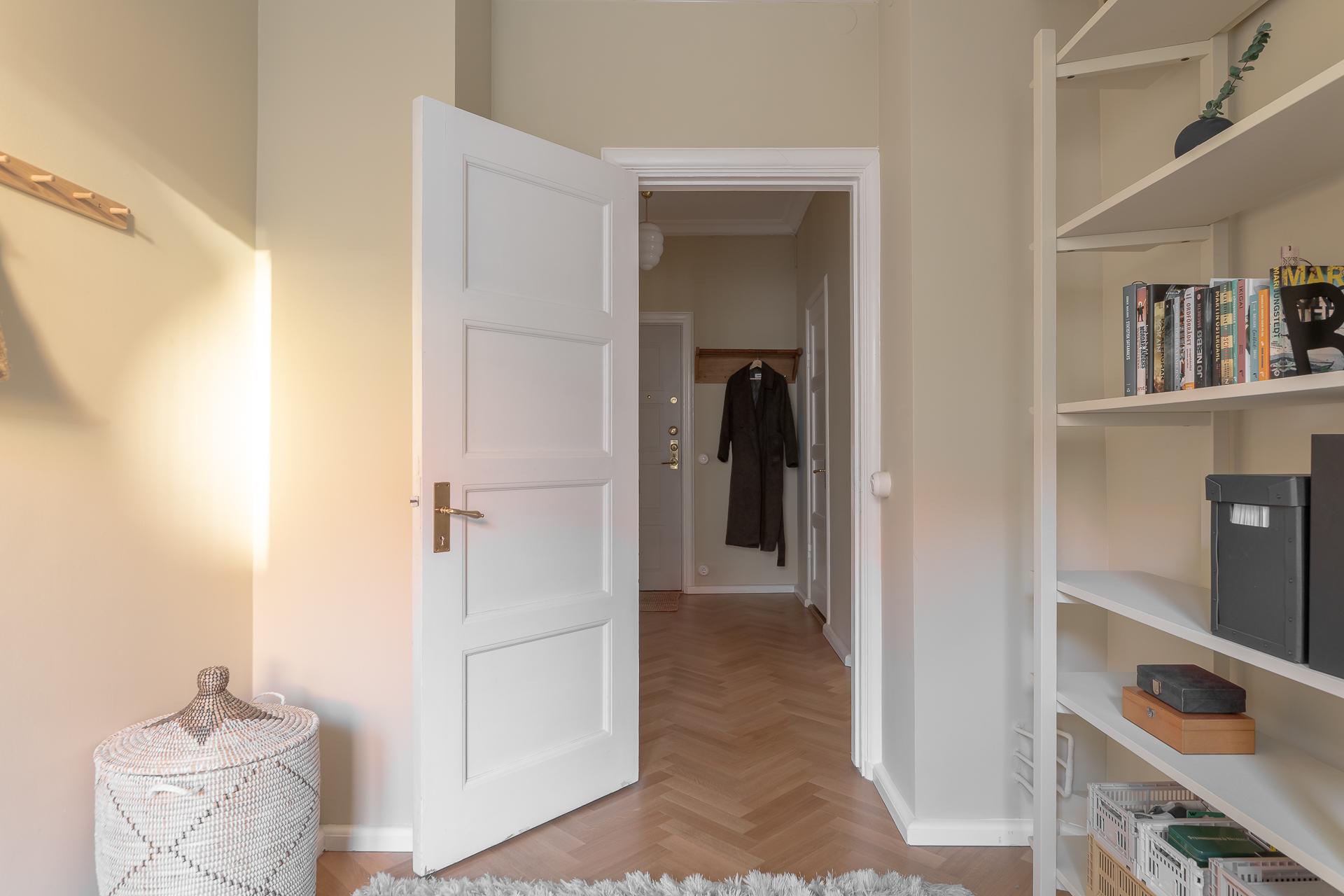 Vacker hörnlägenhet i ett välhållet hus alldeles intill Slottsskogen! Detta är ett mycket lugnt läge, som mestadels trafikeras av flanörer, hundägare och barnvagnsrullare. Högt fritt läge på våning fyra av fem. Hissen tar du smidigt direkt från entrén ända upp till våningsplanet. Föreningen kan vi också lovorda. Låg belåningsgrad, låga avgifter, bra hyresintäkter och ett allt igenom mycket välskött hus!