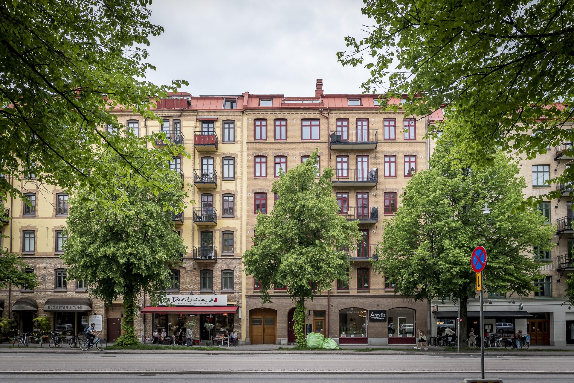Drömlik sekelskiftestvåa fritt belägen på våning 3 av 6 i vacker fastighet med hiss. Totalrenoverad i minsta detalj med två rum i fil, fina listverk, genomgående planlösning och köksbalkong i härligt västerläge in mot gården. Platsbyggt smakfullt kök, höga fönster där ljuset flödar in och fin grönska utanför. Fungerade kakelugn. Eftertraktad förening med hyresintäkter från 4 lokaler, låg belåning (2029 kr/kvm) och mycket låga avgifter.