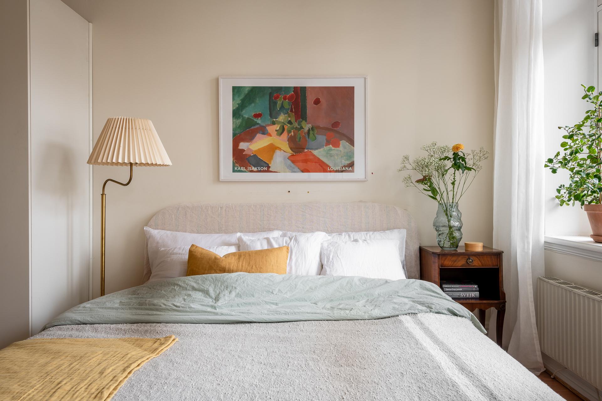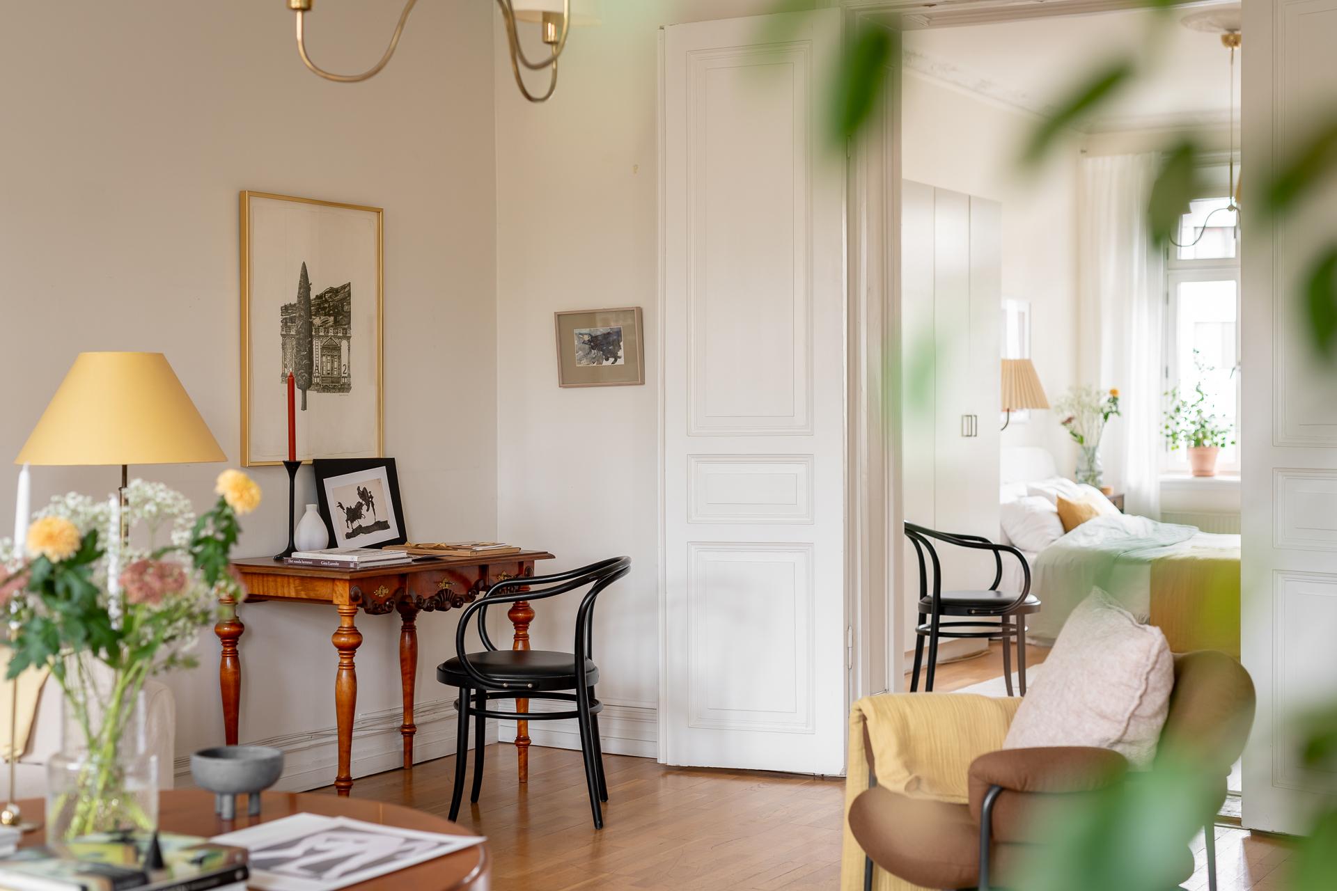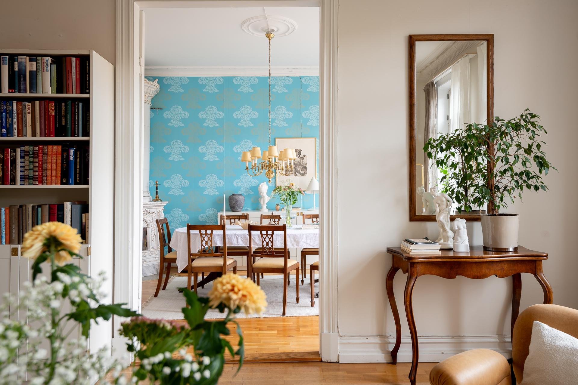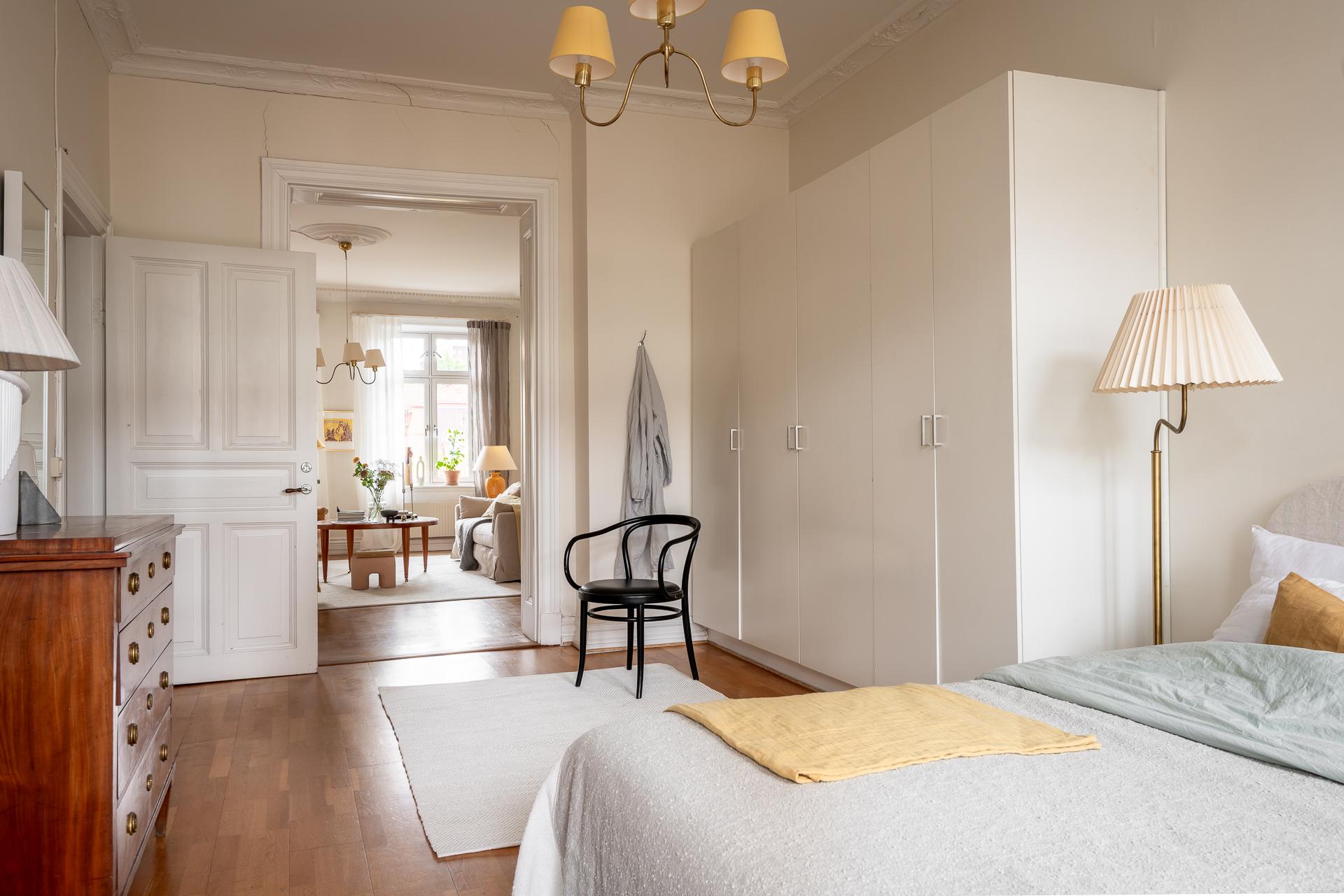 Stilfull sekelskiftestrea om 100 kvm fritt belägen mot grönskan på våning 4 av 6 med hiss (stannar på halvplan)Två fantastiska balkonger - en i öst och eni väst med sol från morgon till sen kväll. Många höga fönster gör detta hem oerhört ljust. Vacker kakelugn, stuckaturer, pardörrar och takrosetter. Möjlighet att flytta kök och skapa ditt egna drömboende!