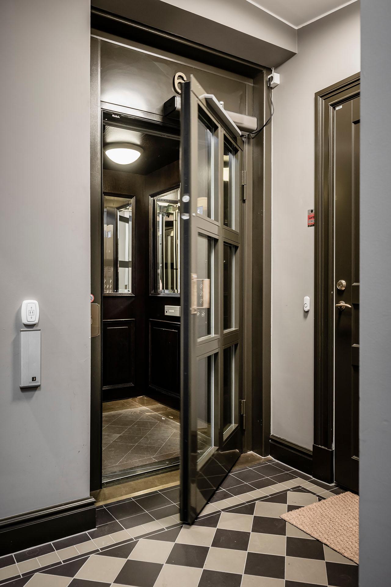 - Hiss: Ja, Hissen nås från uppgång 15 och går hela vägen upp till vindsplanet.