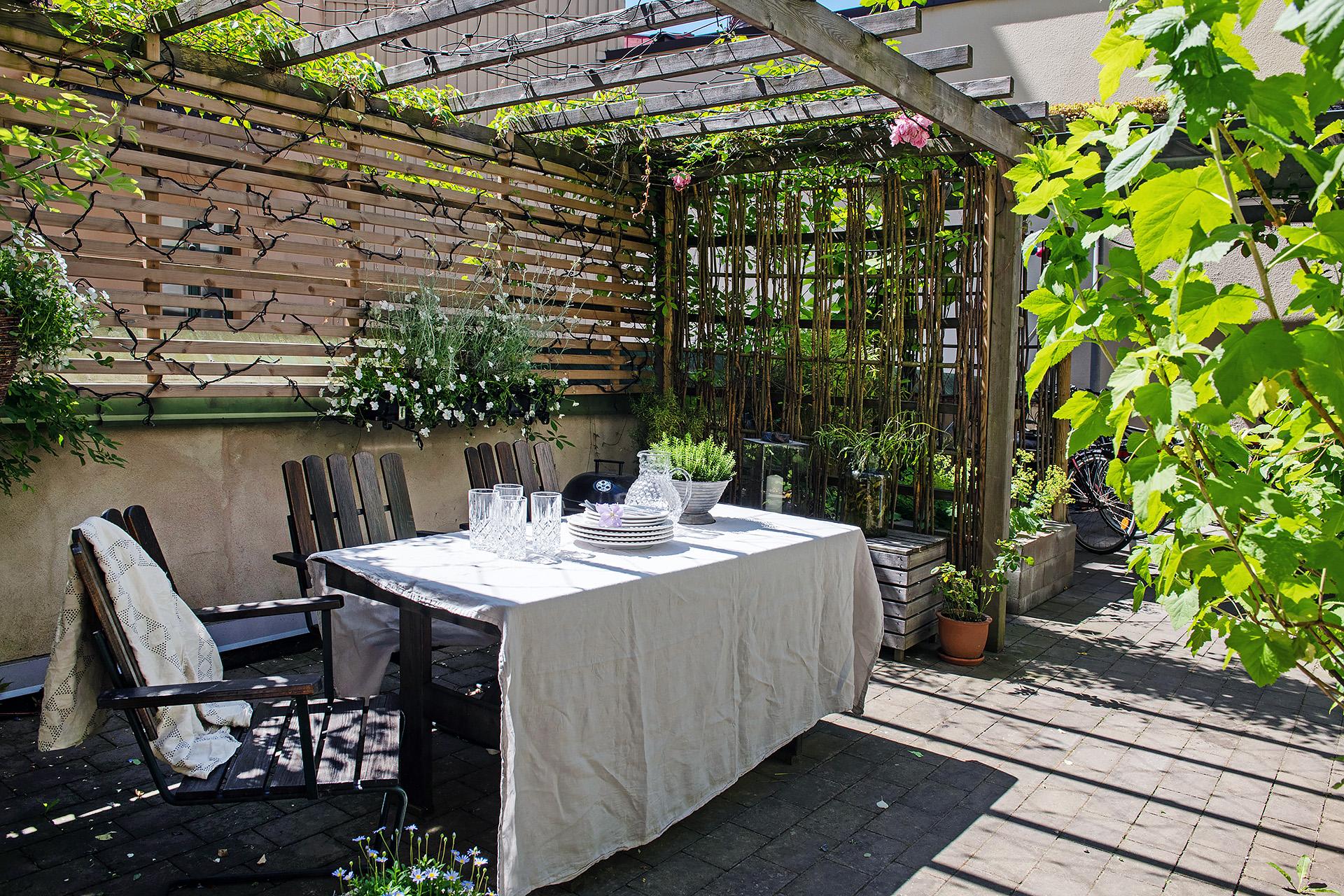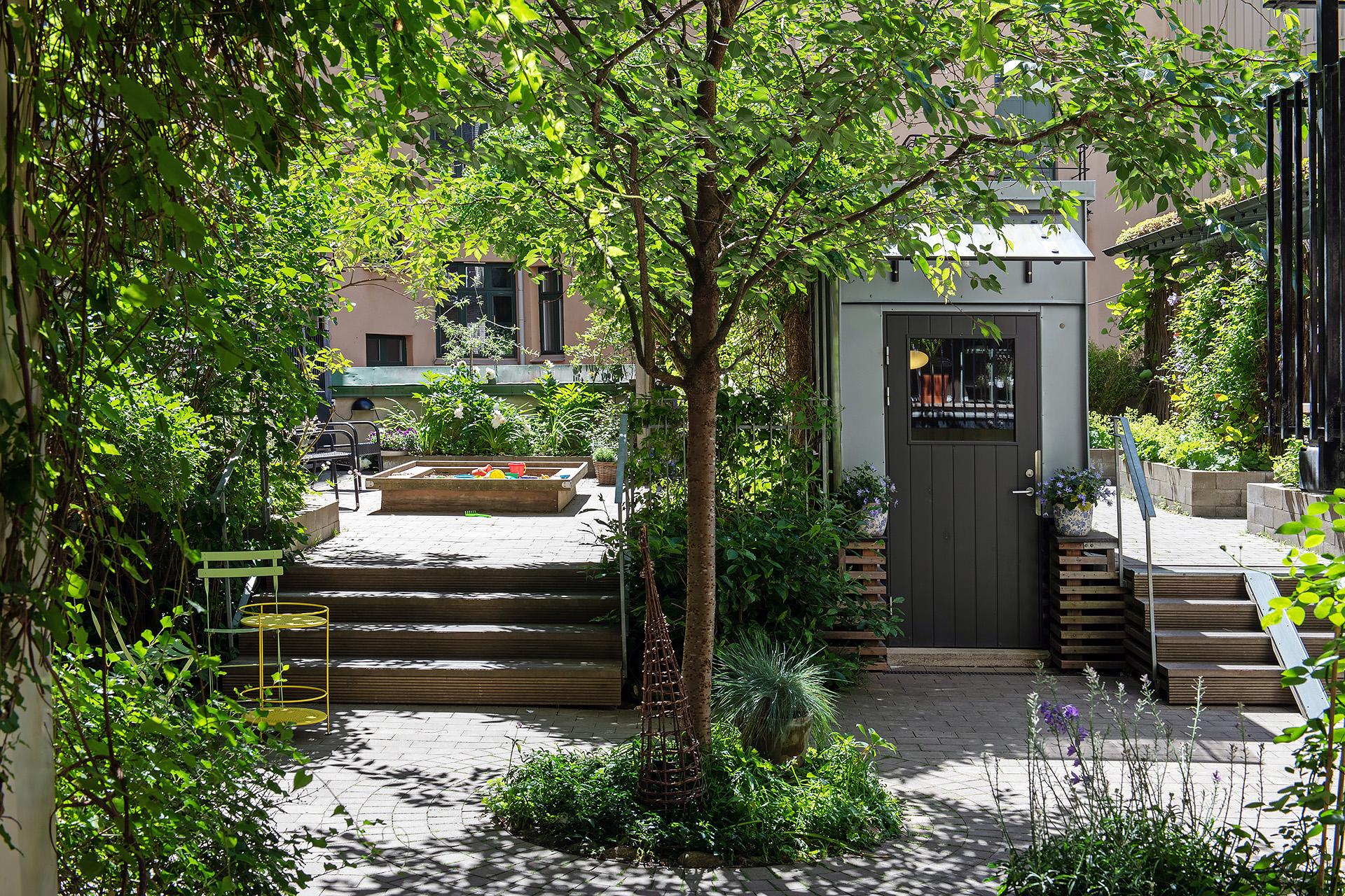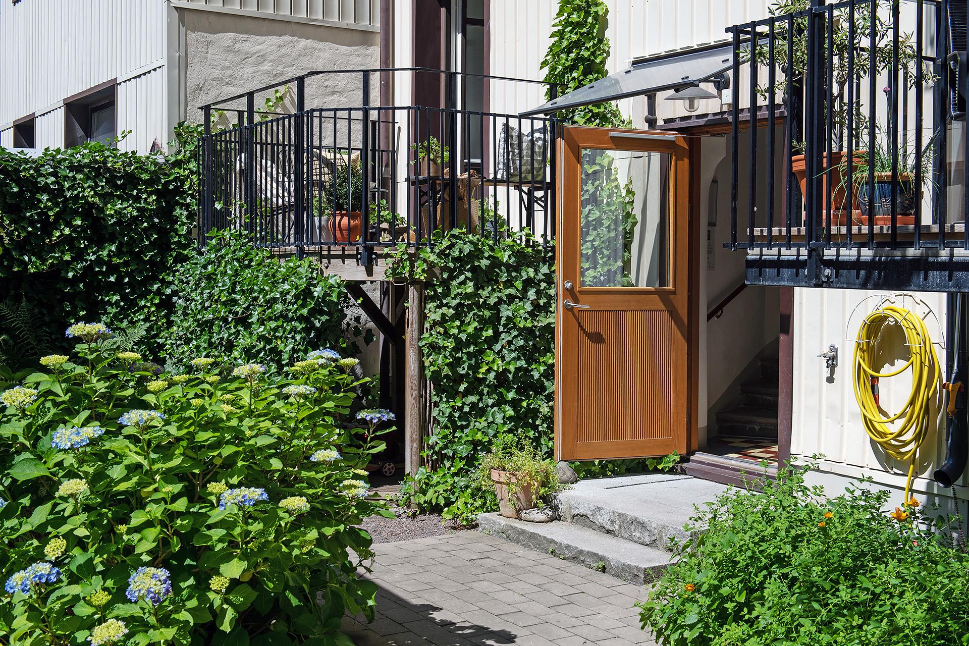 Föreningen har nyligen renoverat innergården - som blivit prisbelönt dessutom! - och som är inbjudande med fin stenläggning, planteringar, grönskande träd, utemöbler, grill och sophantering. Här finns också möjlighet att parkera cykeln. Kabel-tv från Com Hem ingår i avgiften och bredband finns indraget i fastigheten i form av 100 Mbit-fiber LAN.