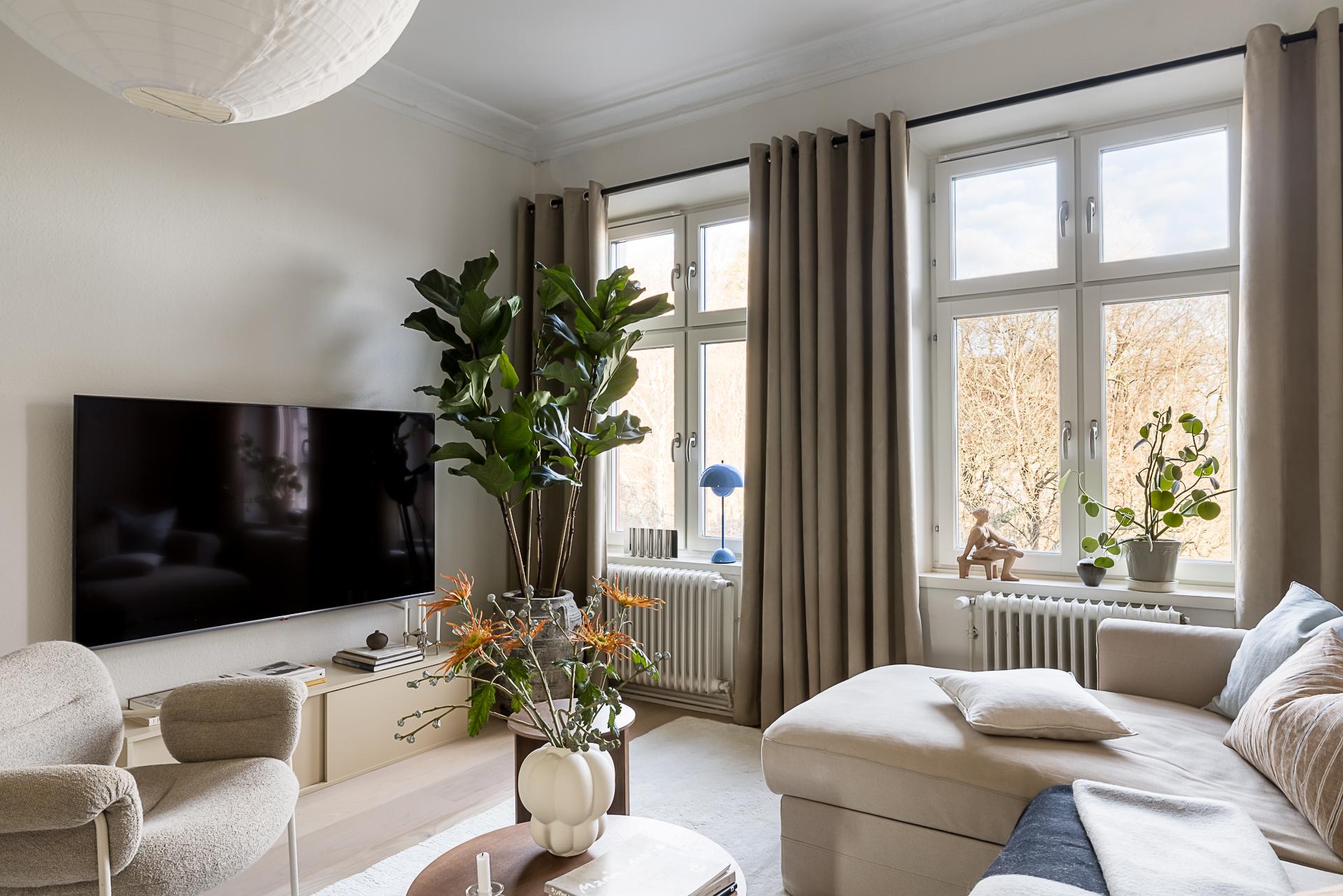 * Genomgående planlösning med fönster åt två väderstreck.