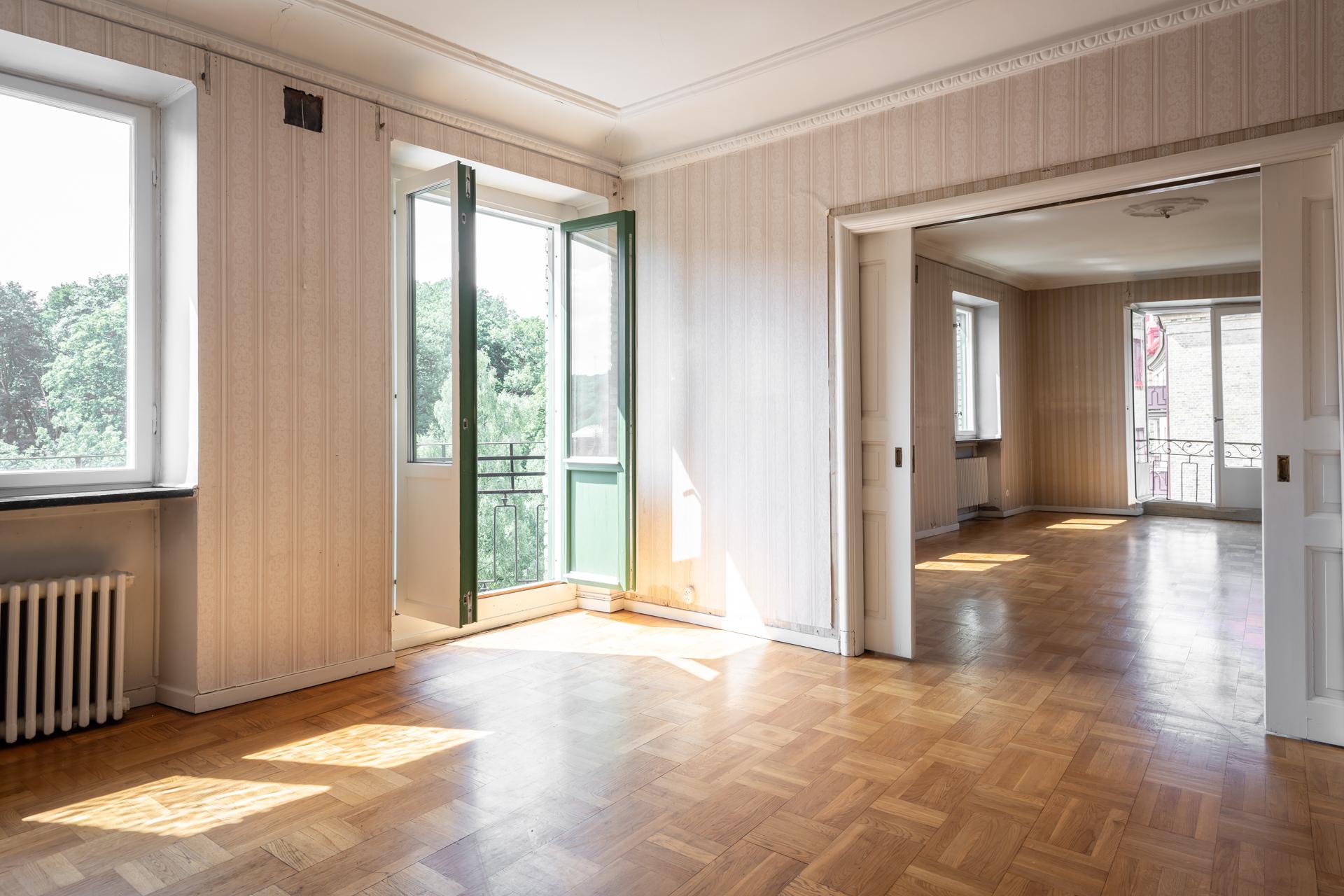 I ett av Rosengatans ståtliga tegelhus finner vi denna makalösa hörnvåning som efter en varsam och kärleksfull renovering kan bli en av de vackraste i Linné. Här finns originaldetaljer i mängder och något så ovanligt som en nästintill intakt originalplanlösning. Högsta ordinarie våningplan (endast vindslägenhet ovanför) och sällskapsrummens vackra fönster vetter mot Slottsskogen i söder och Alfhemsgatan i väster. Två vanliga balkonger och en spansk. Det är bostadsrättsföreningen som säljer lägenheten och hela intäkten går till föreningens kassa. Hiss.