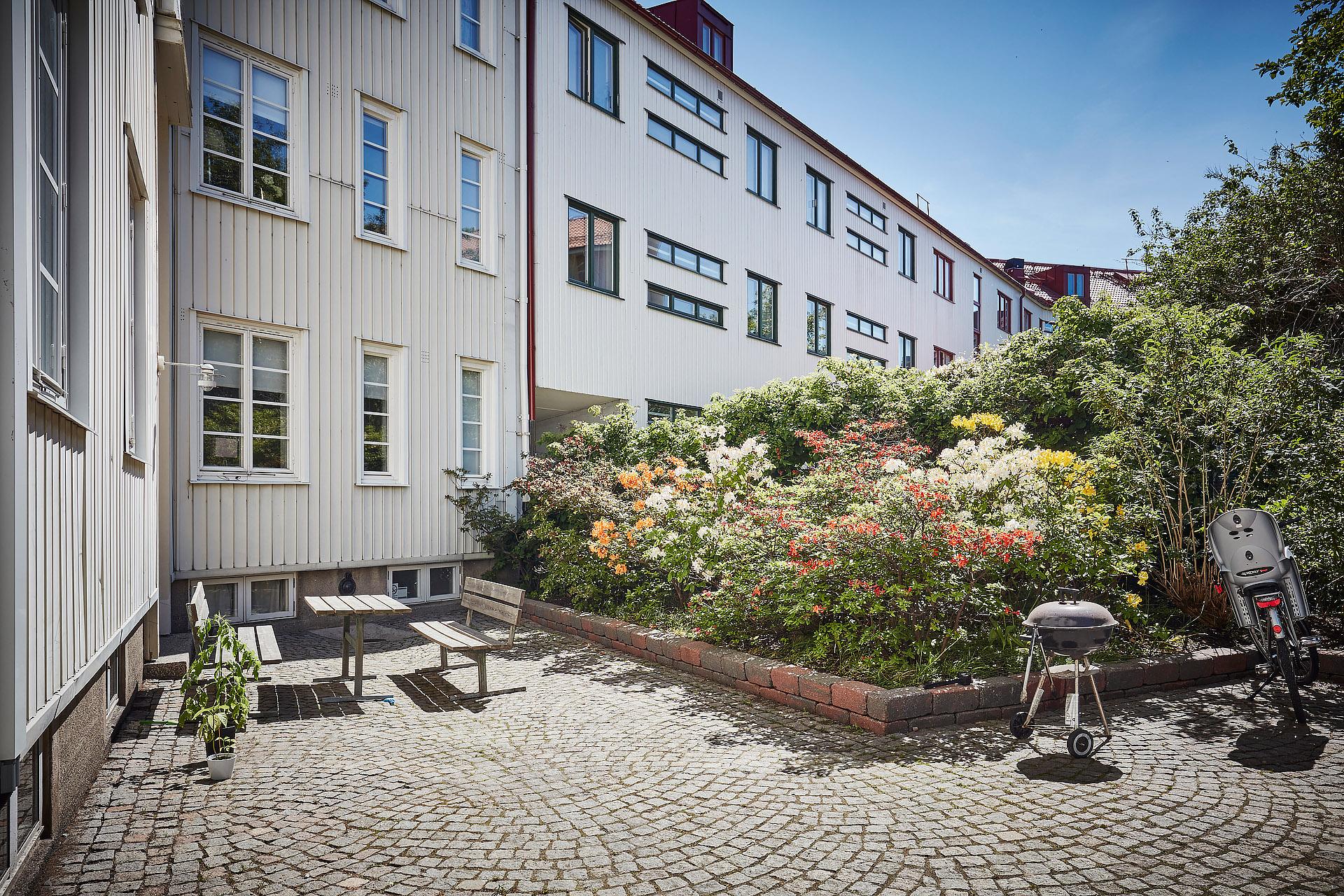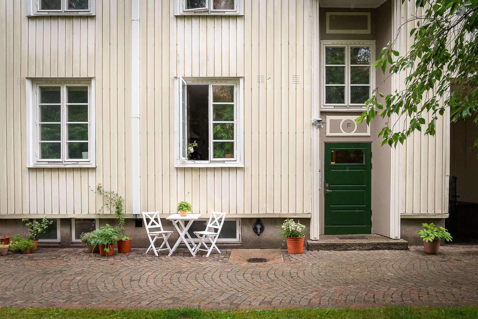 - Balkong/Uteplats: Ja. Trapphusbalkong en halvtrappa ner. Underbar innergård med många sittplatser.