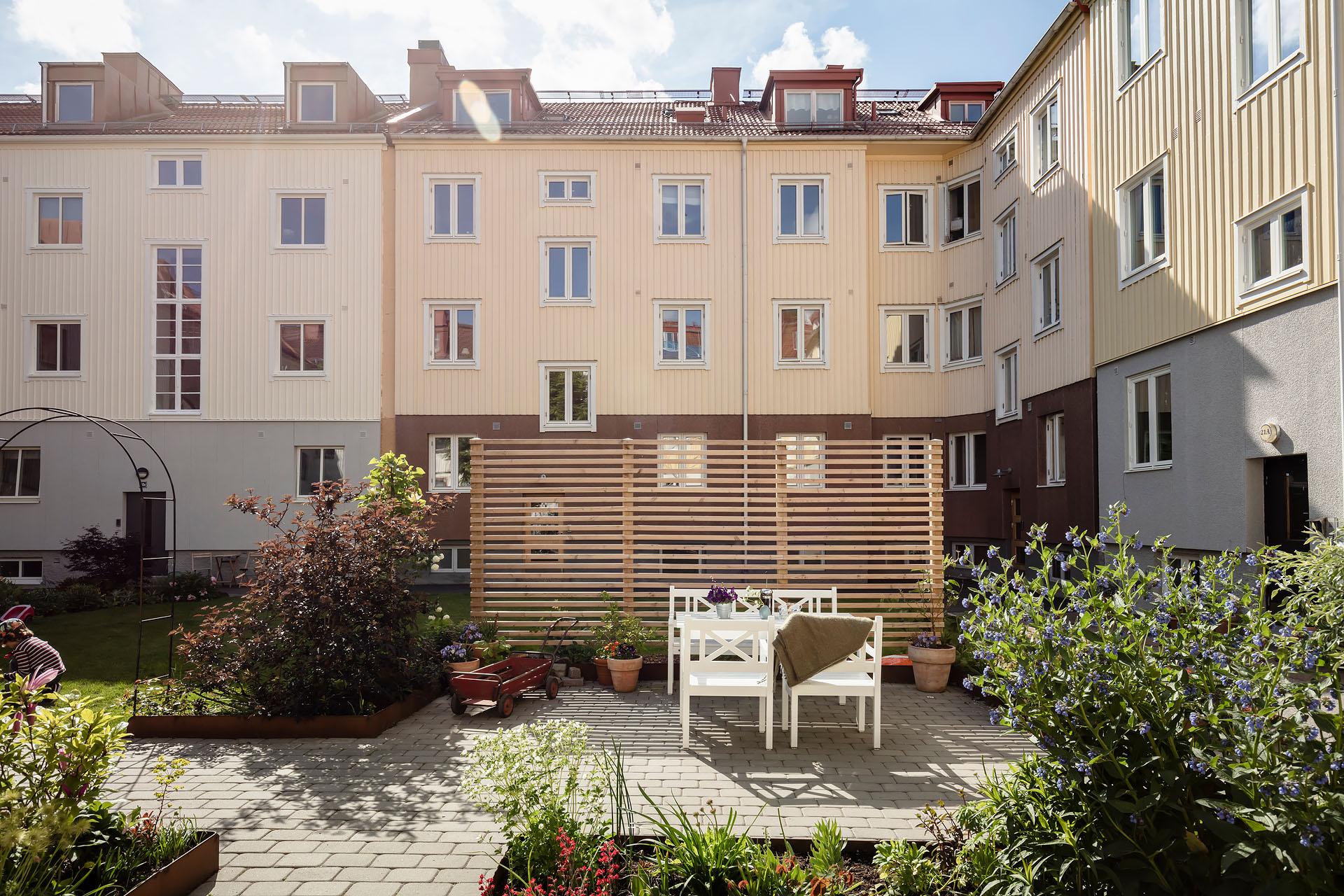 - Balkong/Uteplats: Nej. Underbar innergård med sittplatser och planteringar.