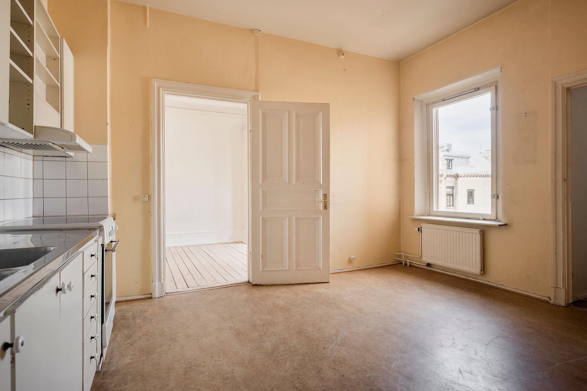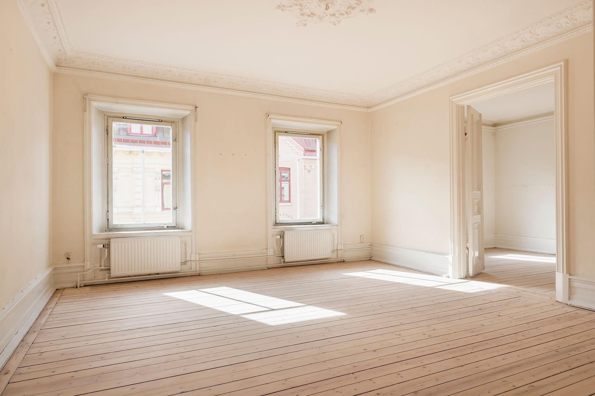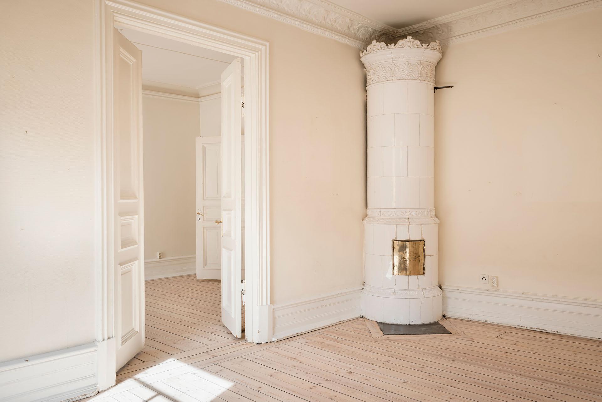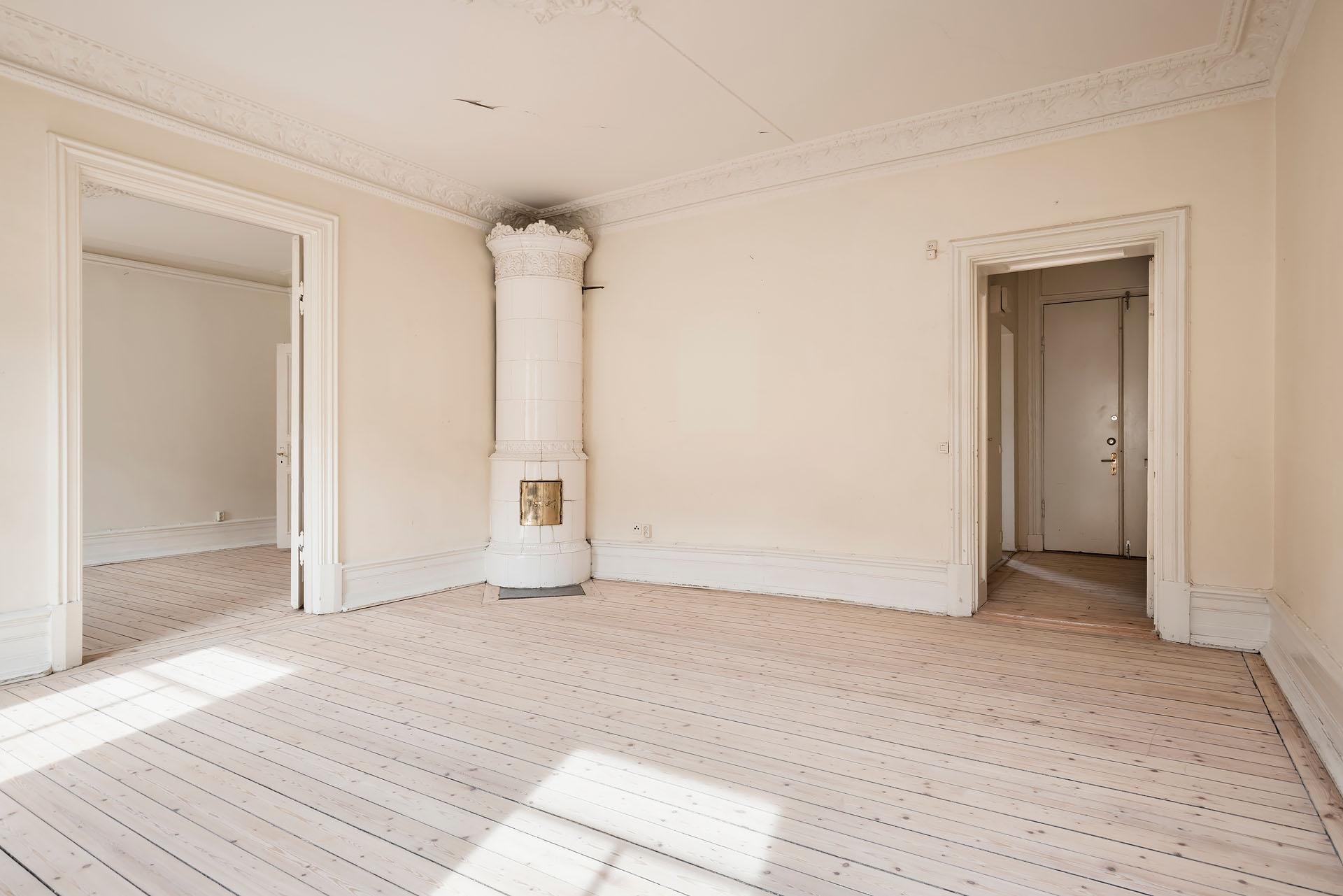 Välkommen till en unik möjlighet att förverkliga er bostadsdröm! På våning 4 av 4, i en av Linnéstadens vackra sekelskiftesfastigheter, väntar denna generösa våning på att få tillbaka sin forna glans. Här ges du chansen att renovera från grunden och skapa något alldeles eget – ett hem med själ, historia och enorm potential. Lägenheten bjuder på en rad bevarade originaldetaljer som sätter tonen: tre pampiga kakelugnar (som går att få i bruk), tidstypiska brädgolv, vackra spegeldörrar, takrosetter och höga fotlister. De djupa fönsternischerna och den generösa takhöjden skapar en fantastisk rymd, och tack vare det höga, fria läget strömmar ljuset in. Föreningen har även en uttalad ambition att möjliggöra balkongbyggnation för de medlemmar som önskar detta vilket bekostas av respektive lägenhetsinnehavare. Den grönskande innergården "Smacken" delas med grannföreningar och erbjuder en ovanligt lummig, parkliknande innergård mitt i Linné..