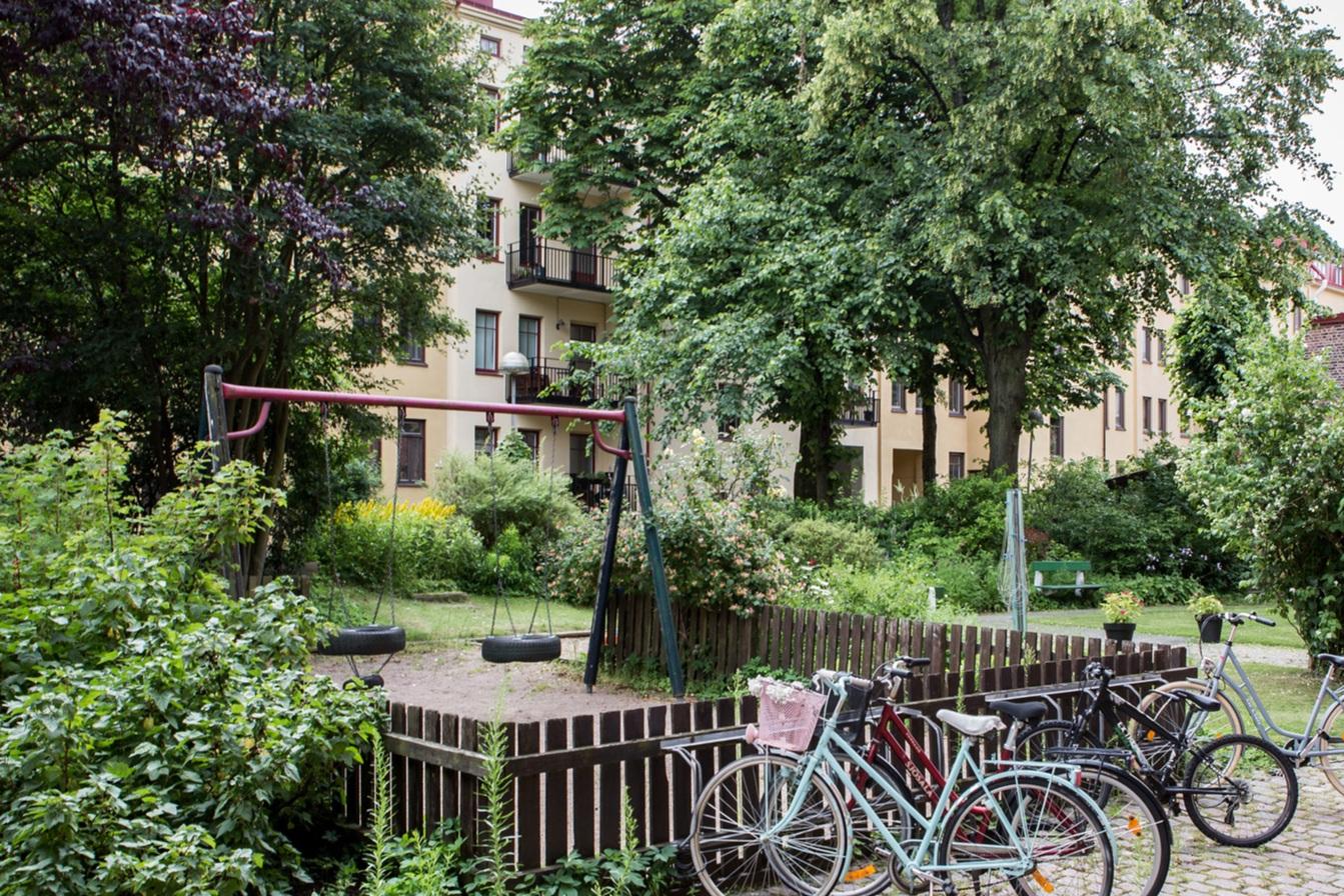 - Balkong/Uteplats: Nej. Föreningen har en stor parkliknande innergård, som är en del av samfälligheten Smacken.
