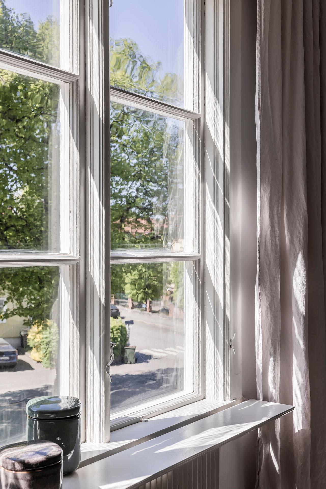 Den här vackra landshövdingehustvåan badar i ljus, och de spröjsade fönstrens handblåsta glas ger eftermiddagssolens strålar ett levande lyster. Efter kvällsmörkrets inbrott är det mysigt att elda i kakelugnen som ståtar i ett av vardagsrummets hörn. De stora treluftsfönstren i fil mot Stockholmsgatans lummiga allé är helt fantastiska, och från köket har man en fin vy mot husets grönskande innergård. Det är ett hem med mycket själ, och de bevarade originaldetaljerna berättar dess historia. Dessutom är kvadratmeterna väl fördelade, och förvaringsmöjligheterna utöver de vanliga. Föreningen är välskött, och den goda ekonomin återspeglas inte minst i den låga månadsavgiften. Mycket trevligt läge i Bagaregården med innerstadens puls, Härlanda tjärns badplats och Skatås natur på promenad- och cykelavstånd. Tillträde: december. Varmt välkomna på visning!