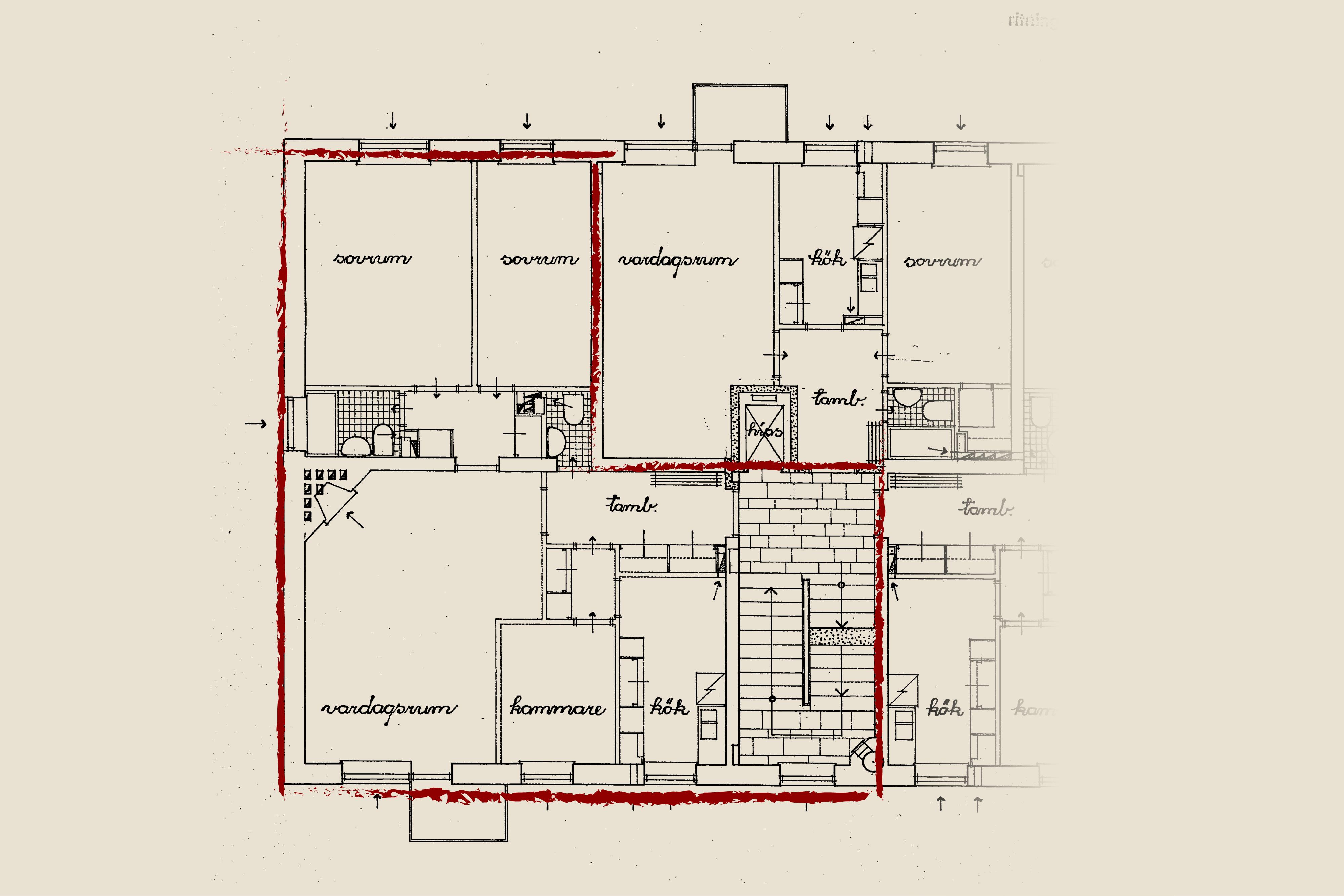 - Våning: 2 av 5, Registrerad våning 1 men är två trappor upp till bostad.